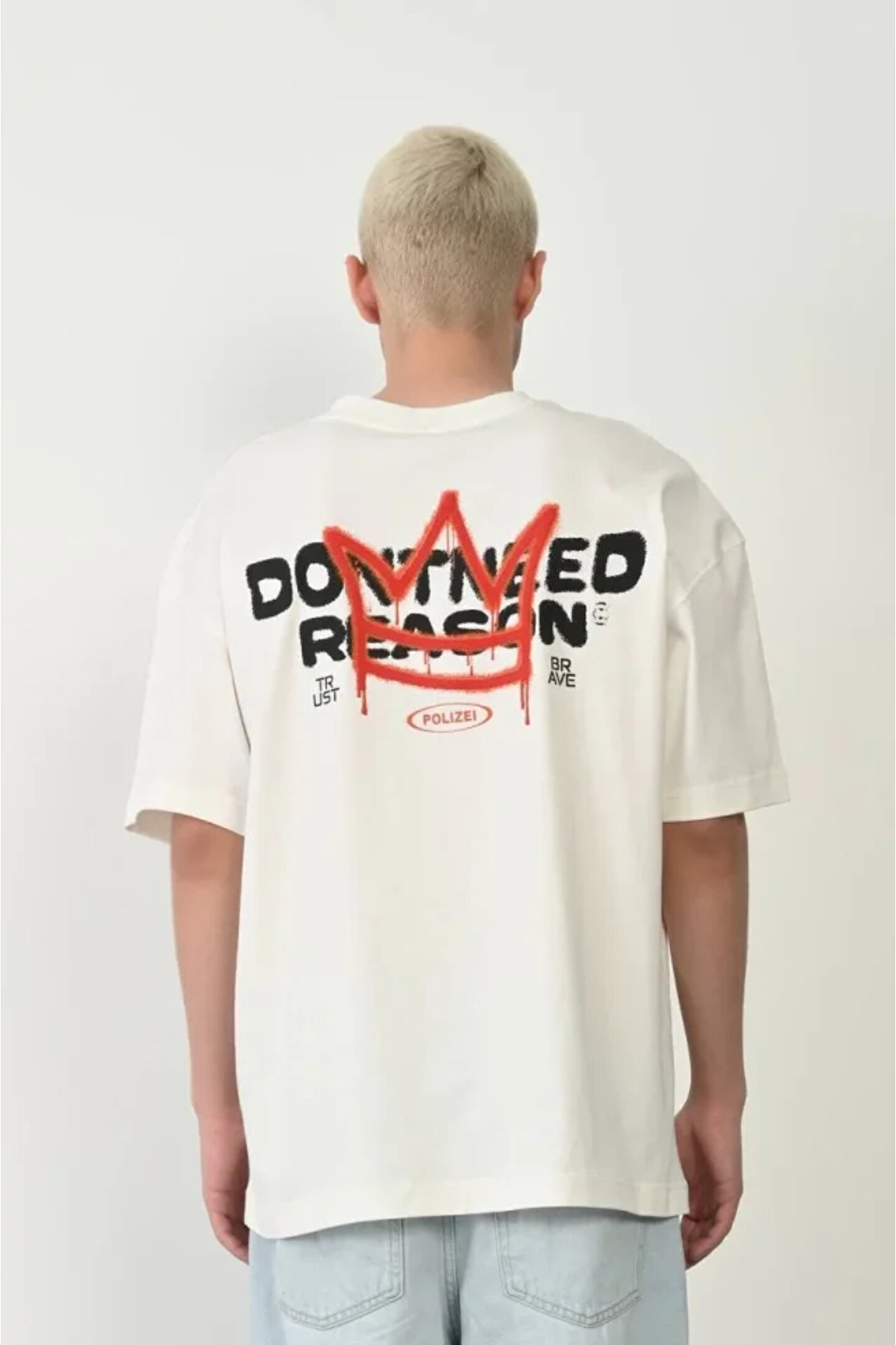 Silerra Unisex Bisiklet Yaka Baskılı Oversize T-Shirt - Beyaz