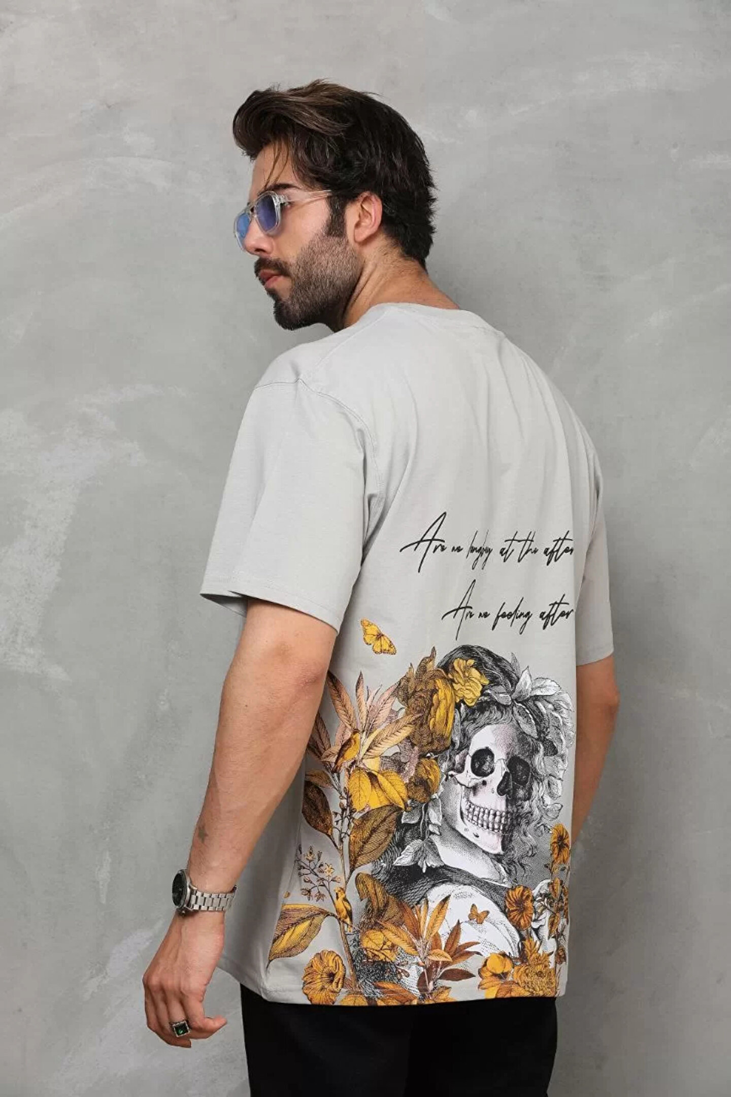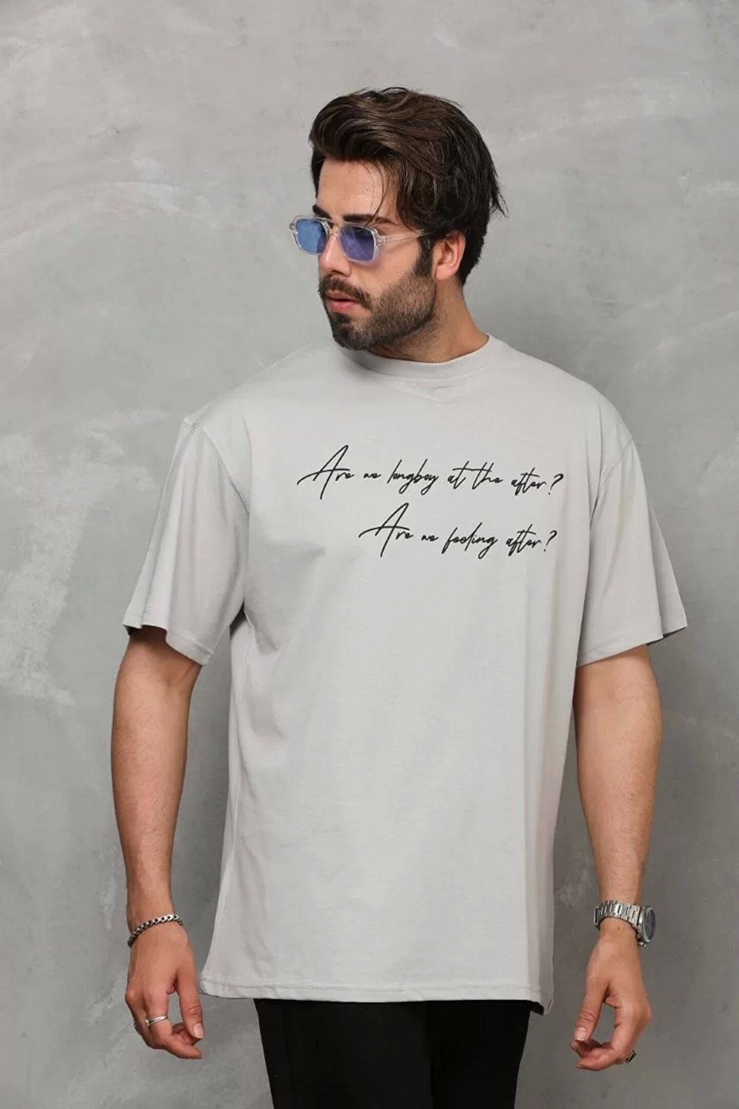 Silerra Unisex Bisiklet Yaka Baskılı Oversize T-Shirt - Gri
