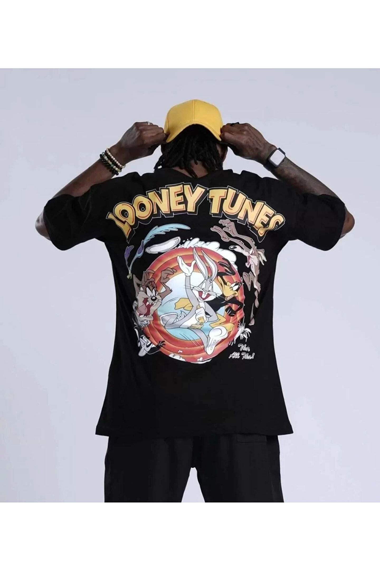 Silerra Unisex Bisiklet Yaka Baskılı Oversize T-Shirt - Siyah