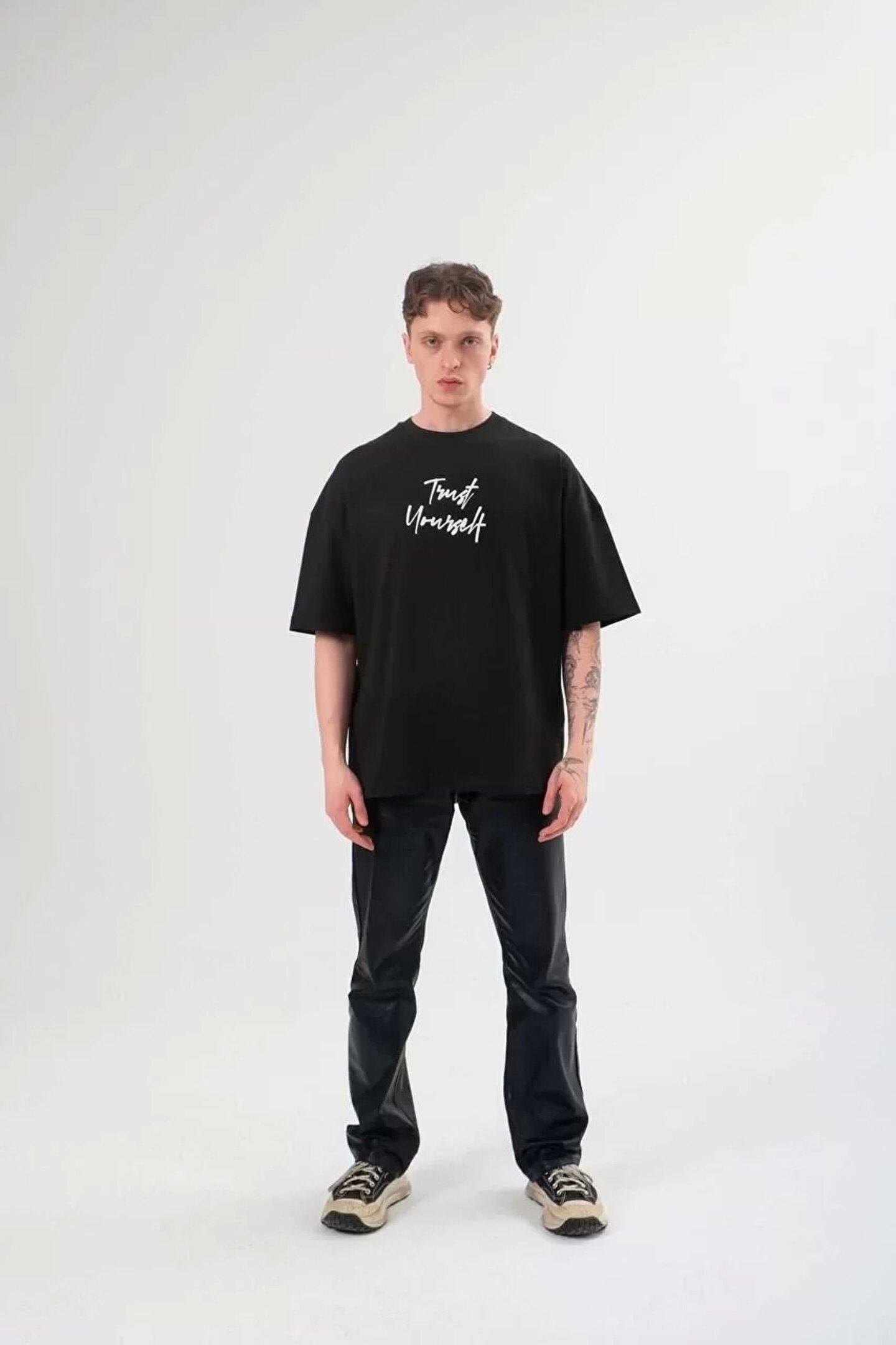 Silerra Unisex Bisiklet Yaka Baskılı Oversize T-Shirt - Siyah