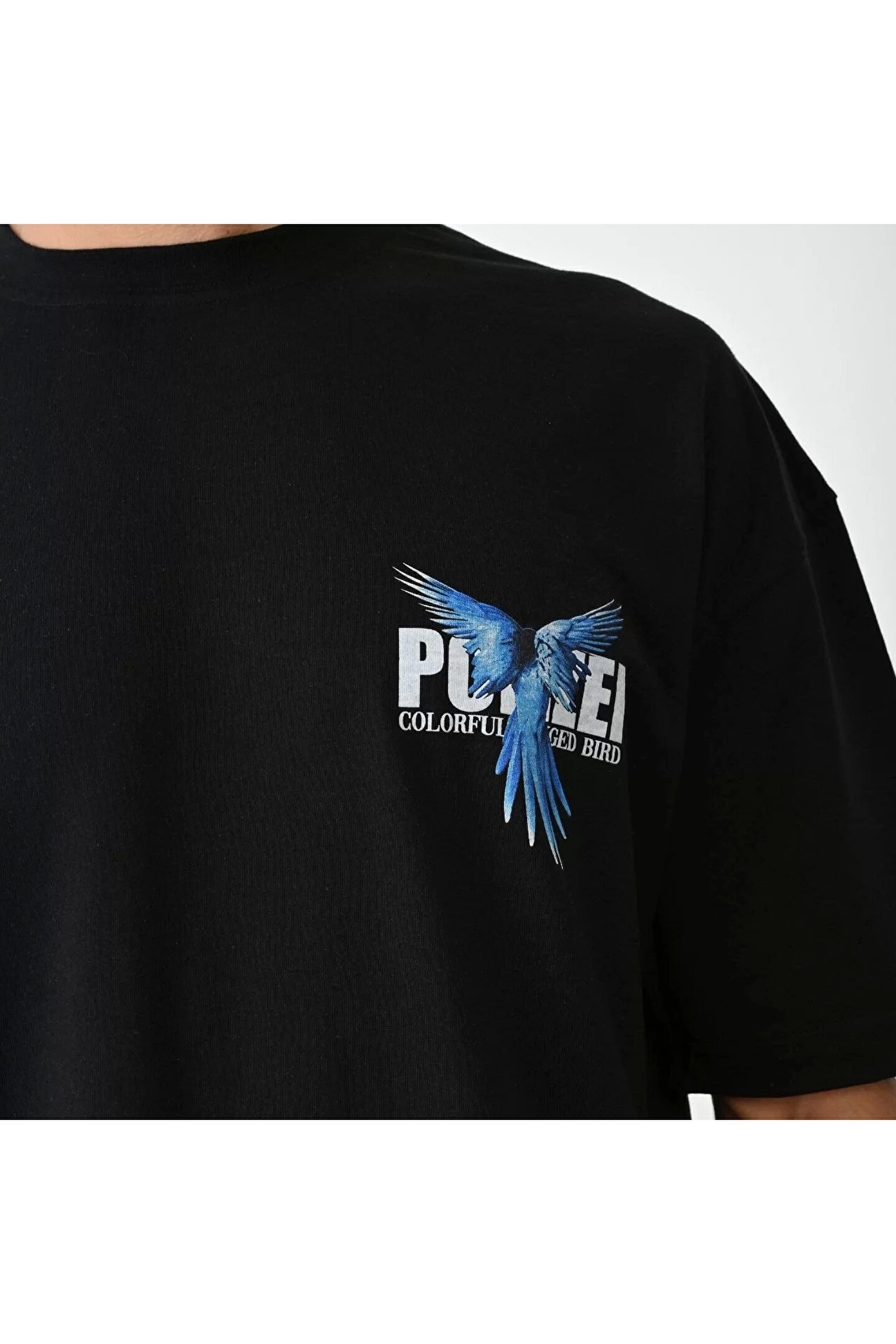 Silerra Unisex Bisiklet Yaka Baskılı Oversize T-Shirt - Siyah