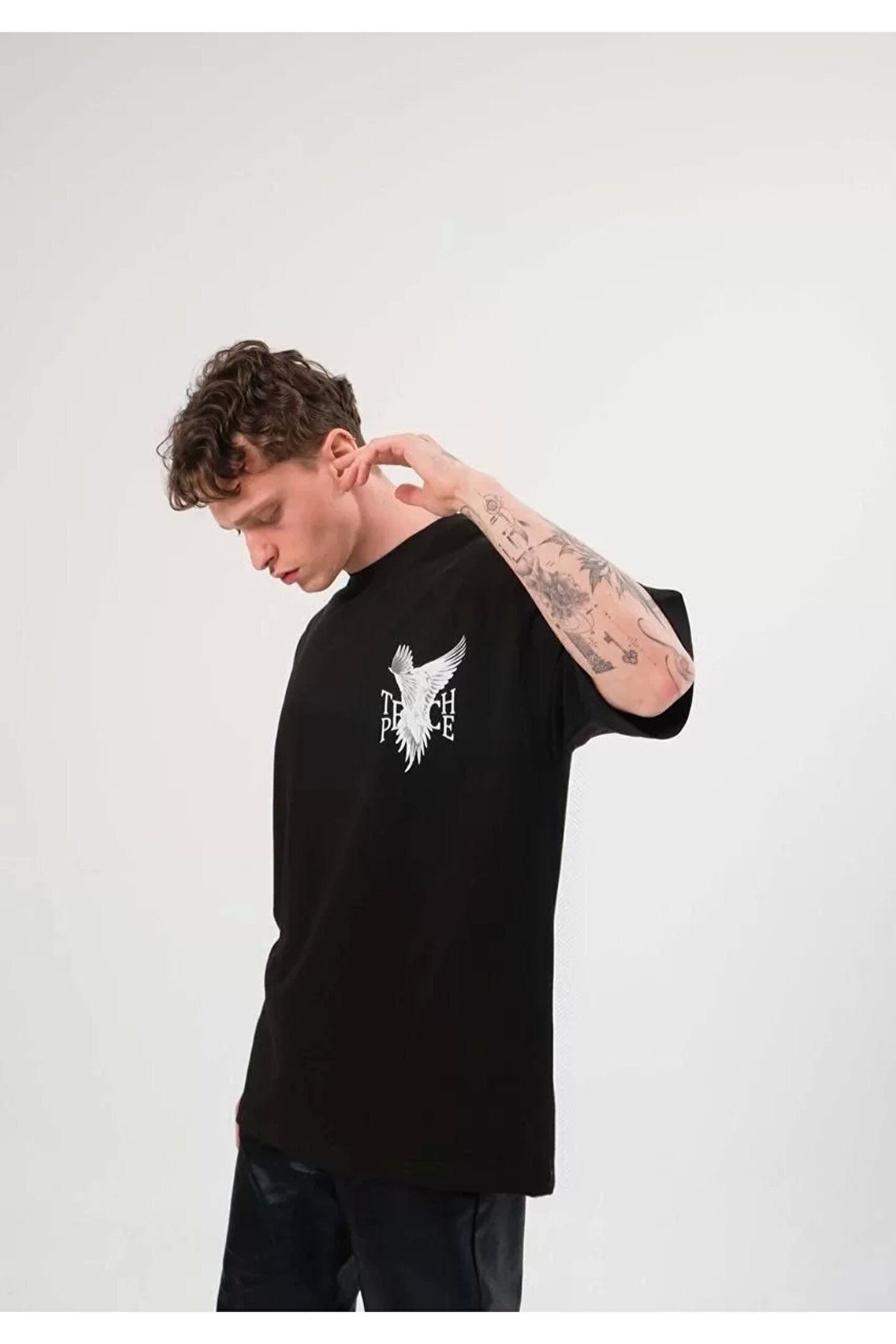 Silerra Unisex Bisiklet Yaka Baskılı Oversize T-Shirt - Siyah