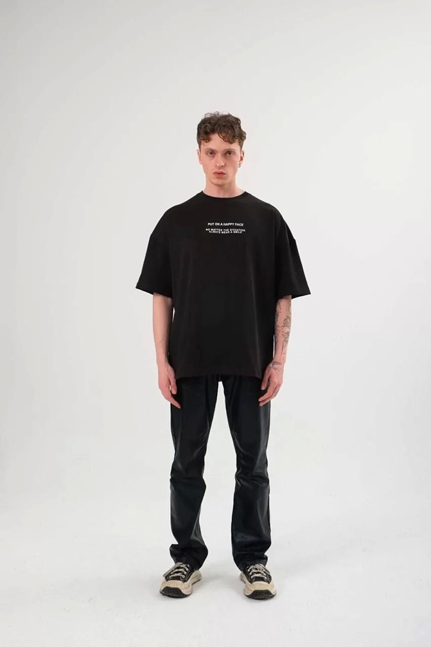 Silerra Unisex Bisiklet Yaka Baskılı Oversize T-Shirt - Siyah