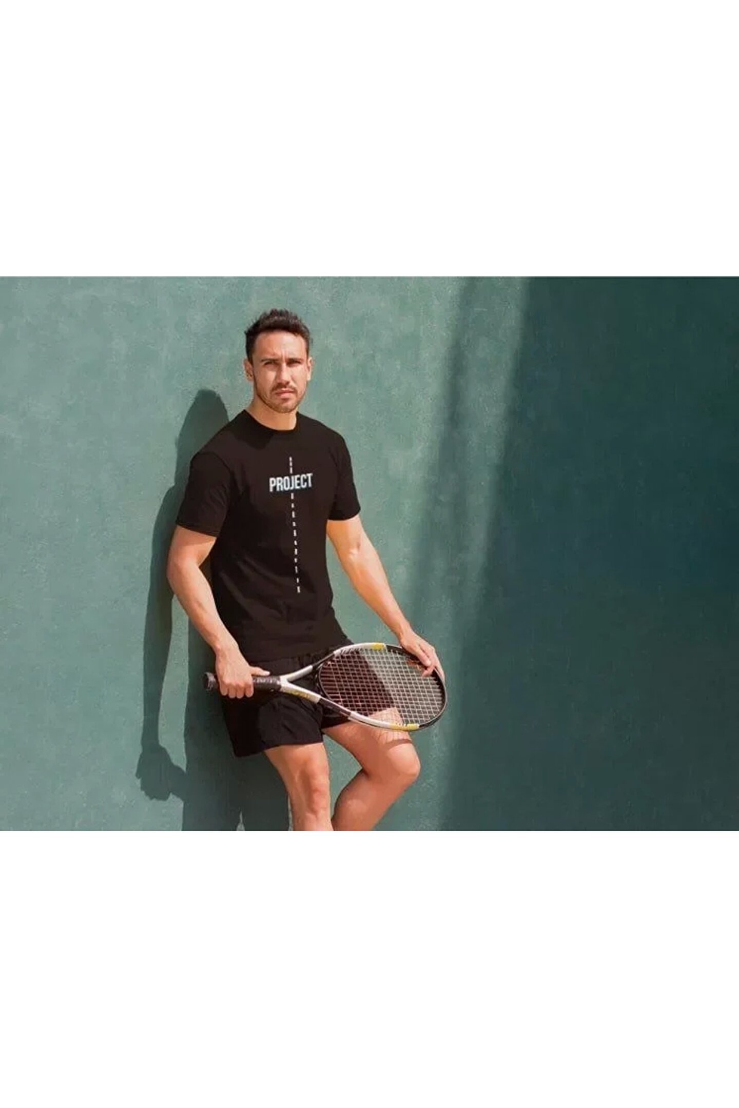Unisex Bisiklet Yaka Baskılı Oversize T-Shirt - Siyah