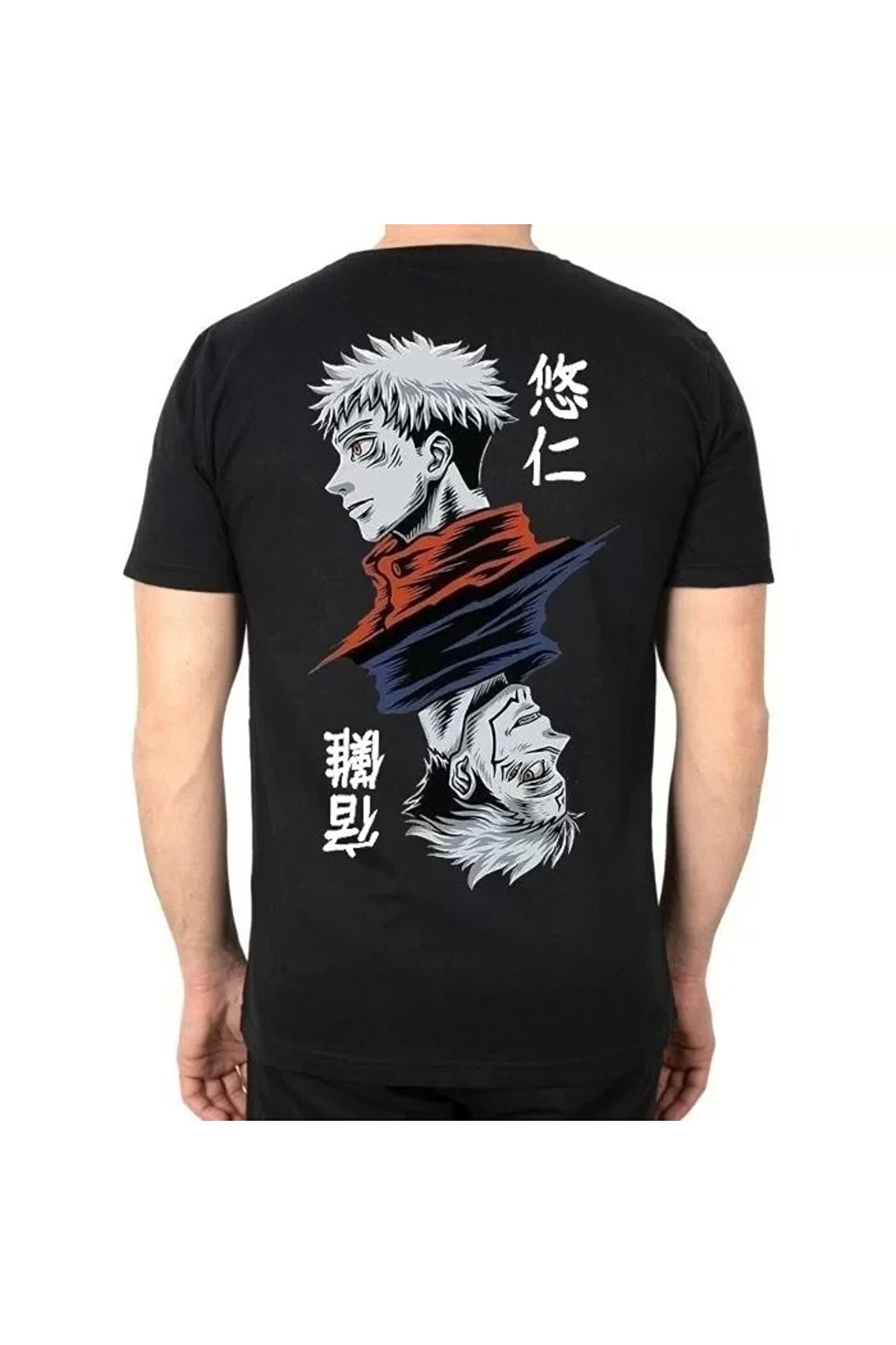 Unisex Bisiklet Yaka Baskılı Oversize T-Shirt - Siyah