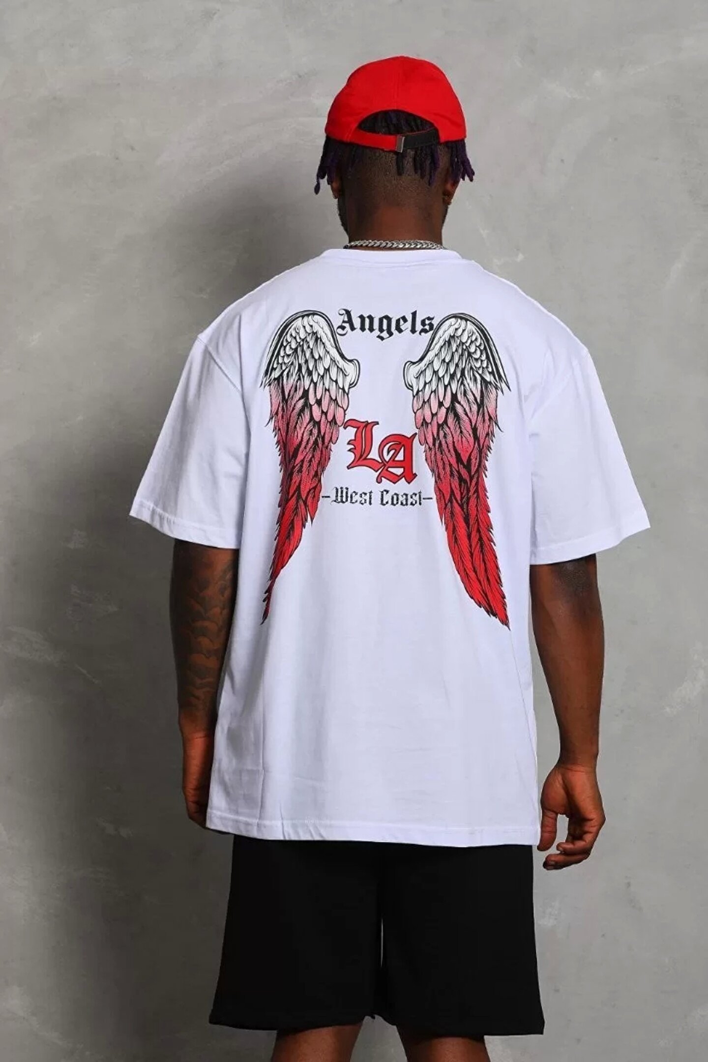 Silerra Unisex Oversize Baskılı Bisiklet Yaka T-Shirt - Beyaz