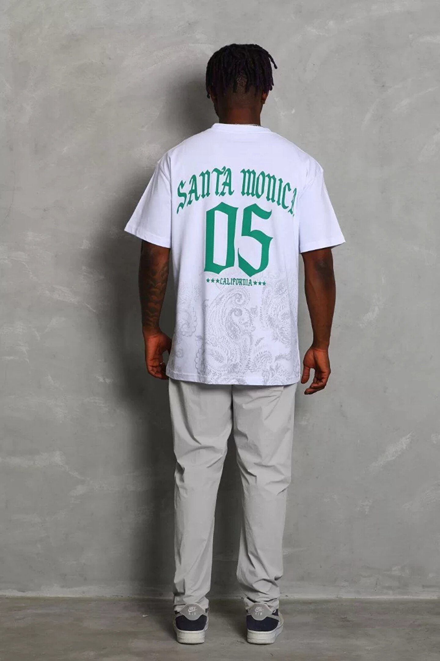 Silerra Unisex Oversize Baskılı Bisiklet Yaka T-Shirt - Beyaz