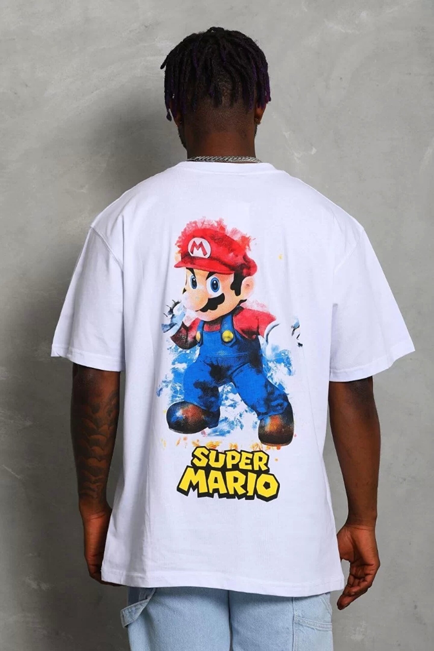 Silerra Unisex Oversize Baskılı Bisiklet Yaka T-Shirt - Beyaz
