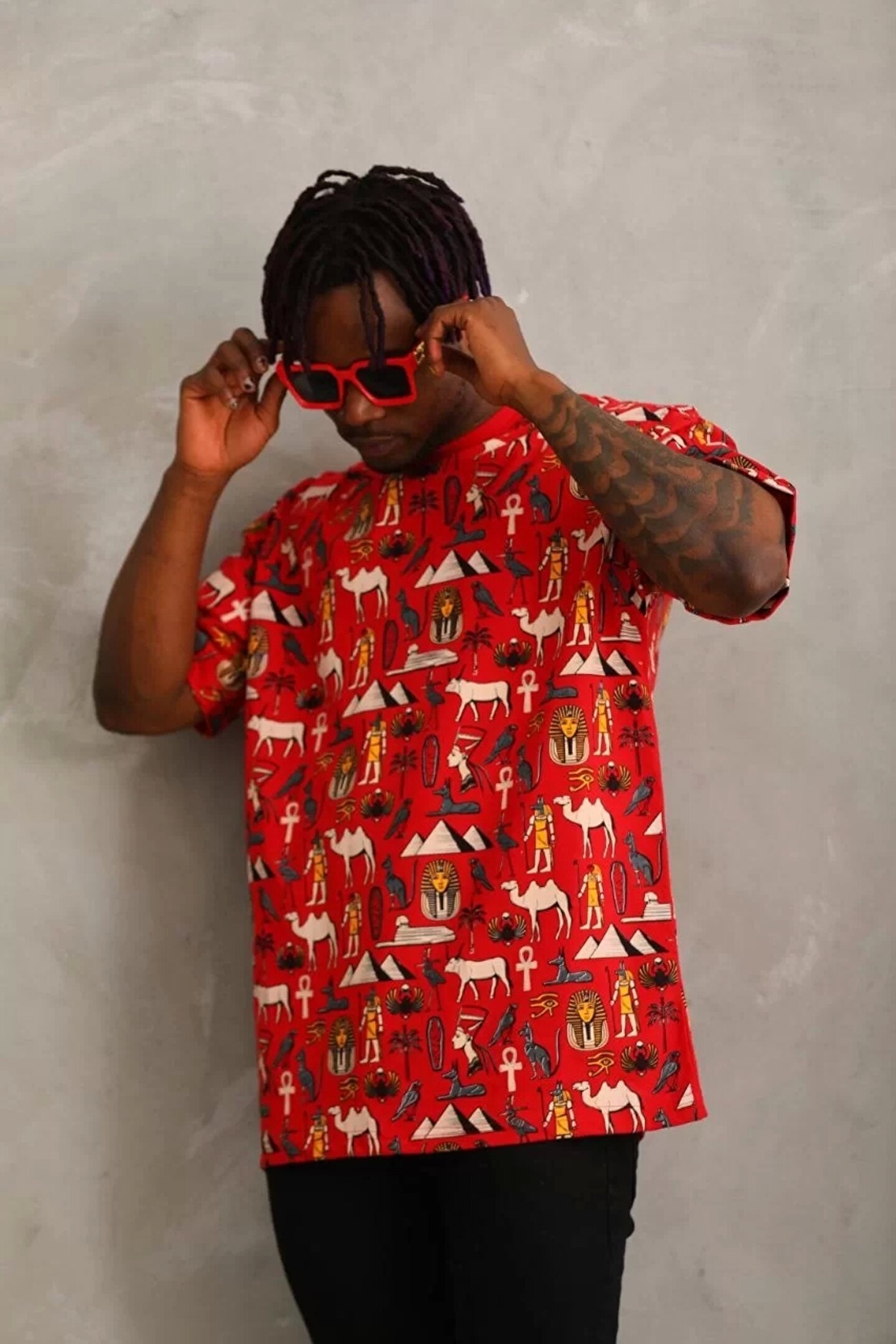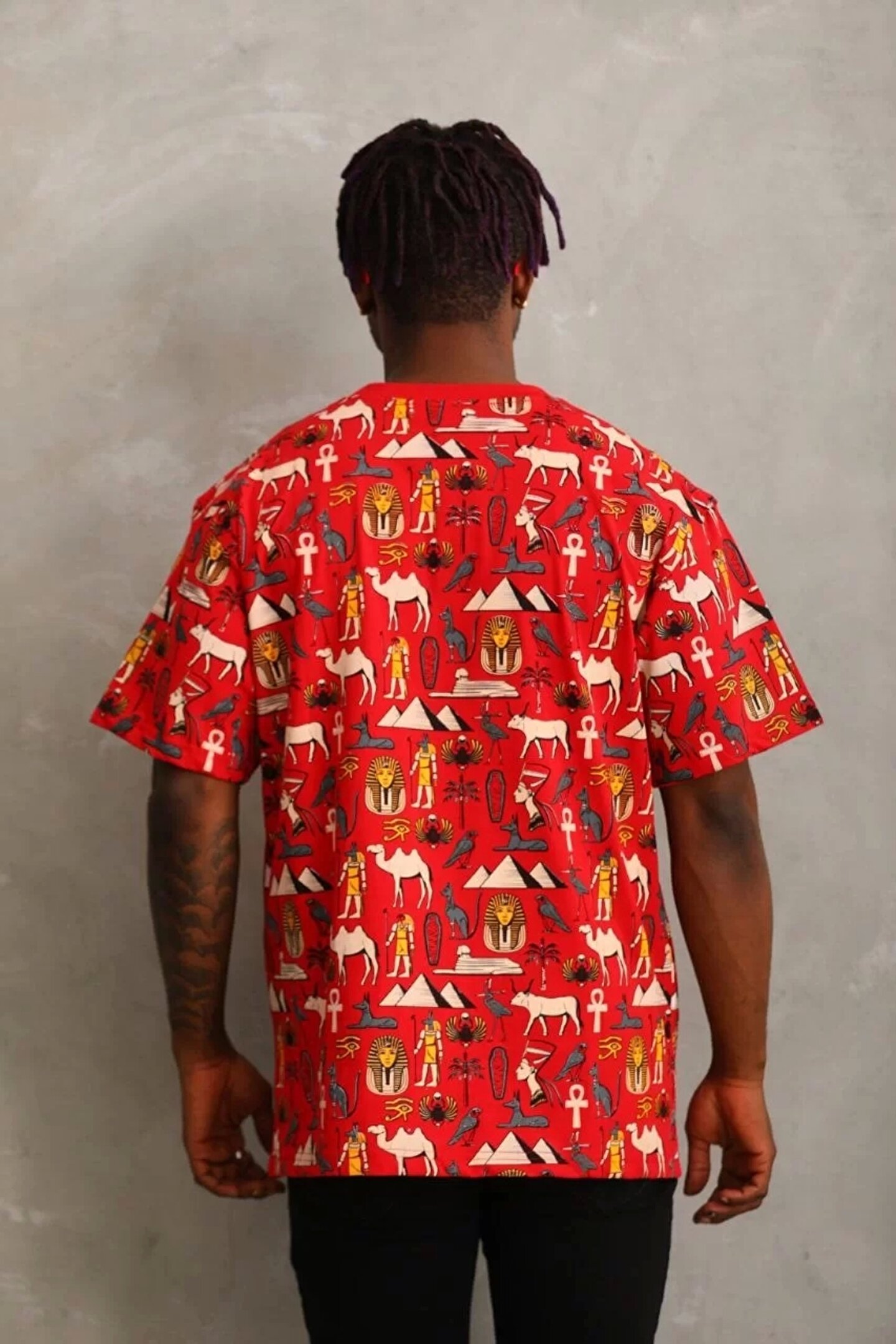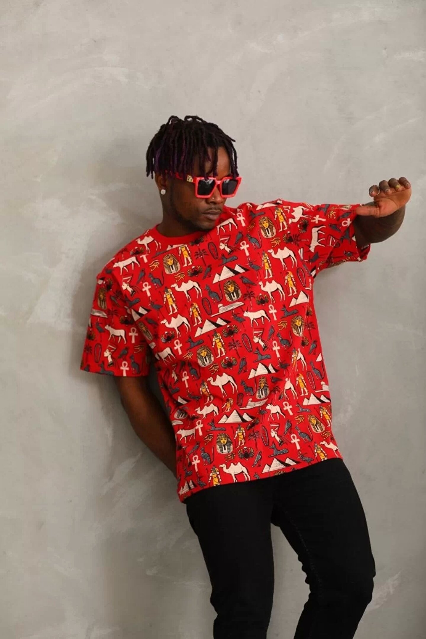 Unisex Oversize Baskılı Bisiklet Yaka T-Shirt - Kırmızı