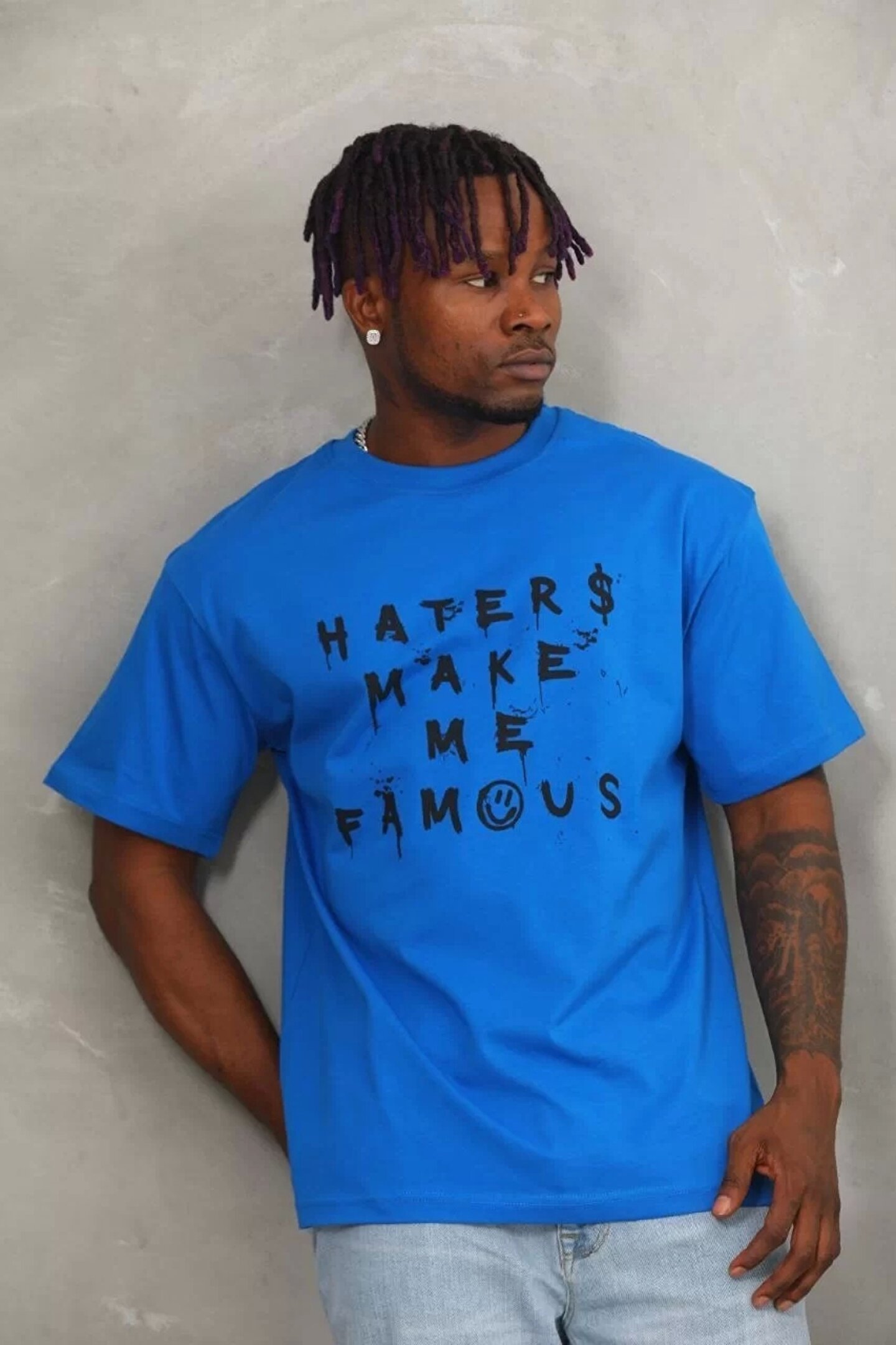 Silerra Unisex Oversize Baskılı Bisiklet Yaka T-Shirt - Mavi