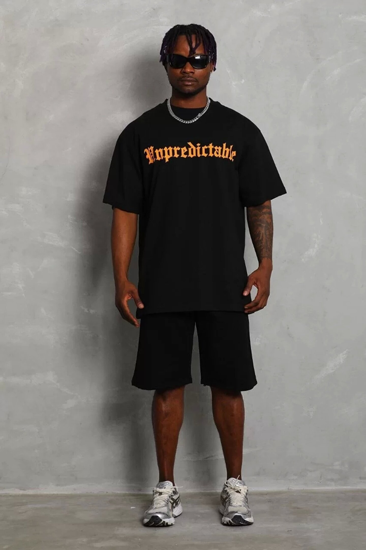 Silerra Unisex Oversize Baskılı Bisiklet Yaka T-Shirt - Siyah
