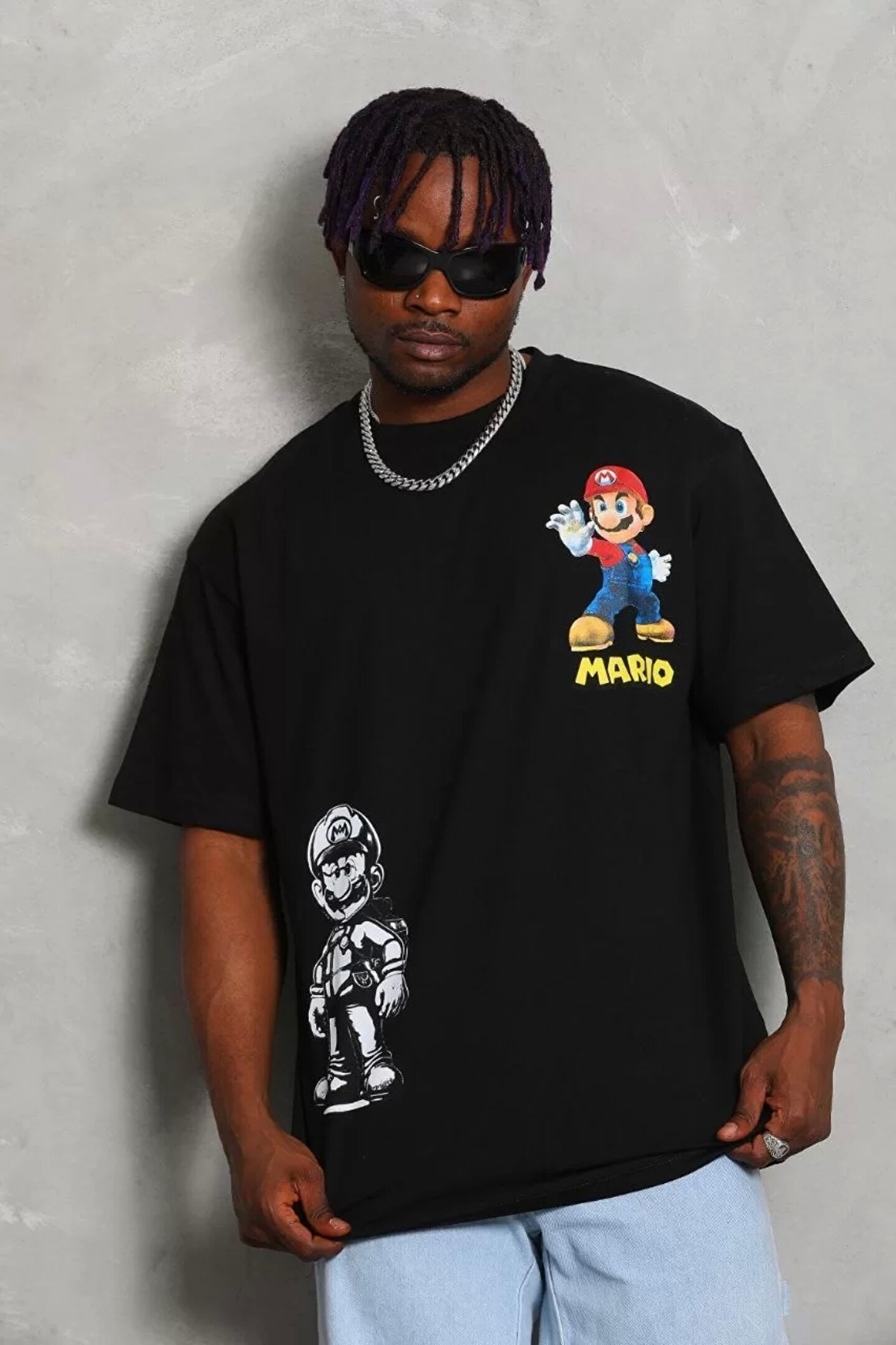 Silerra Unisex Oversize Baskılı Bisiklet Yaka T-Shirt - Siyah