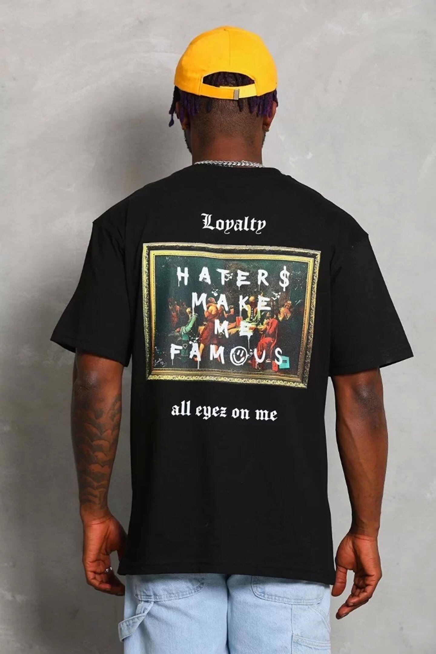 Silerra Unisex Oversize Baskılı Bisiklet Yaka T-Shirt - Siyah