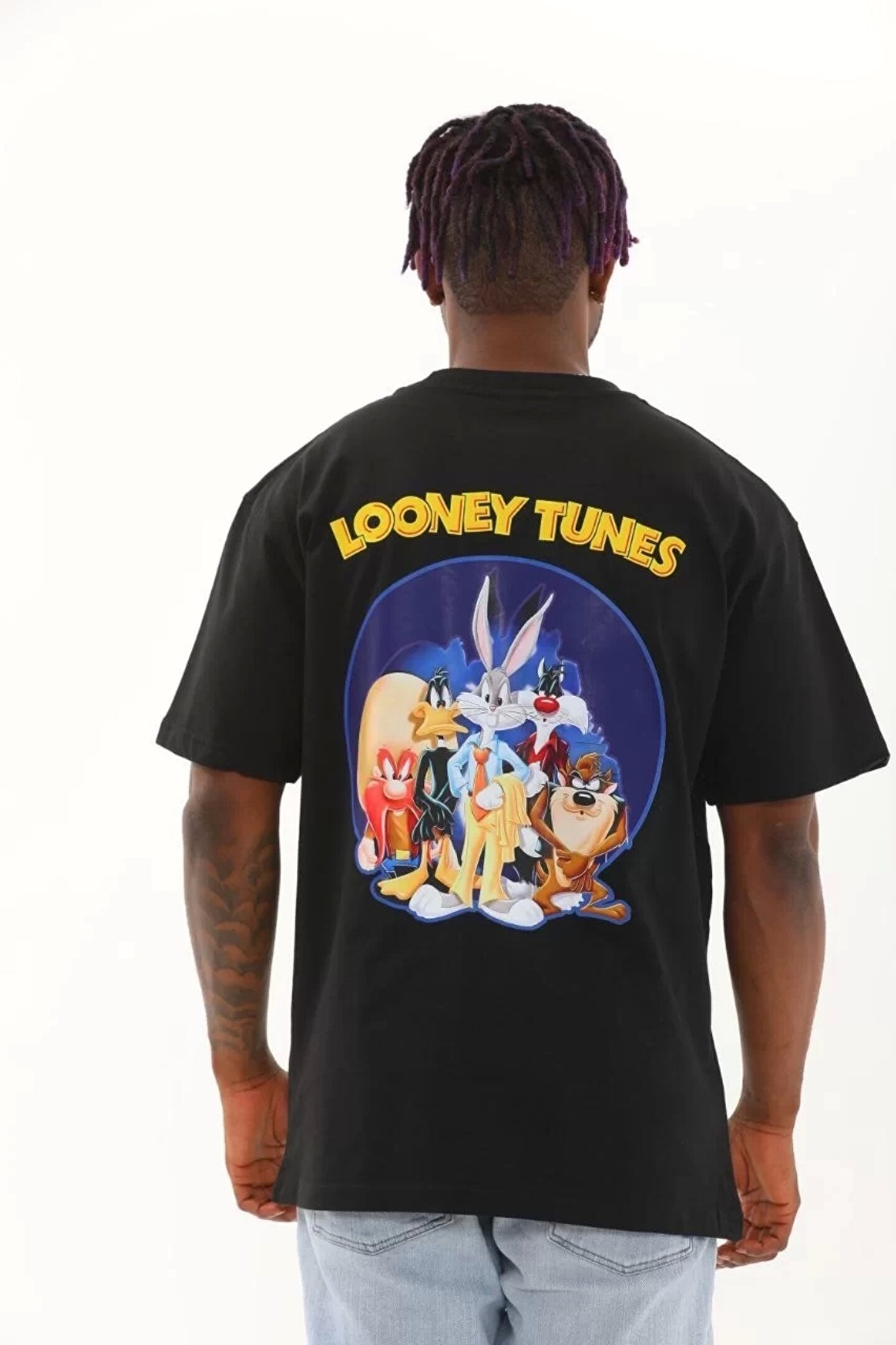Silerra Unisex Oversize Baskılı Bisiklet Yaka T-Shirt - Siyah