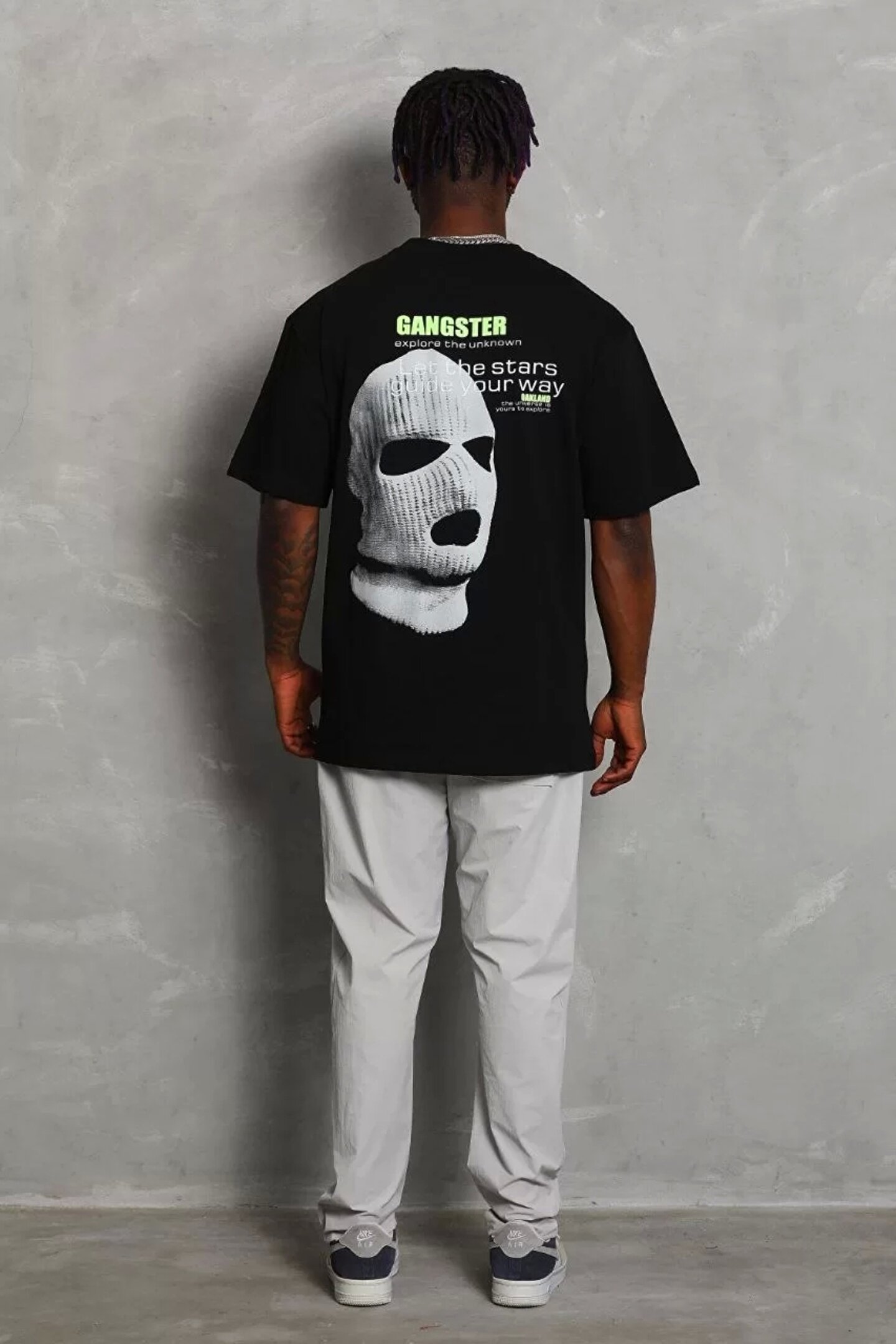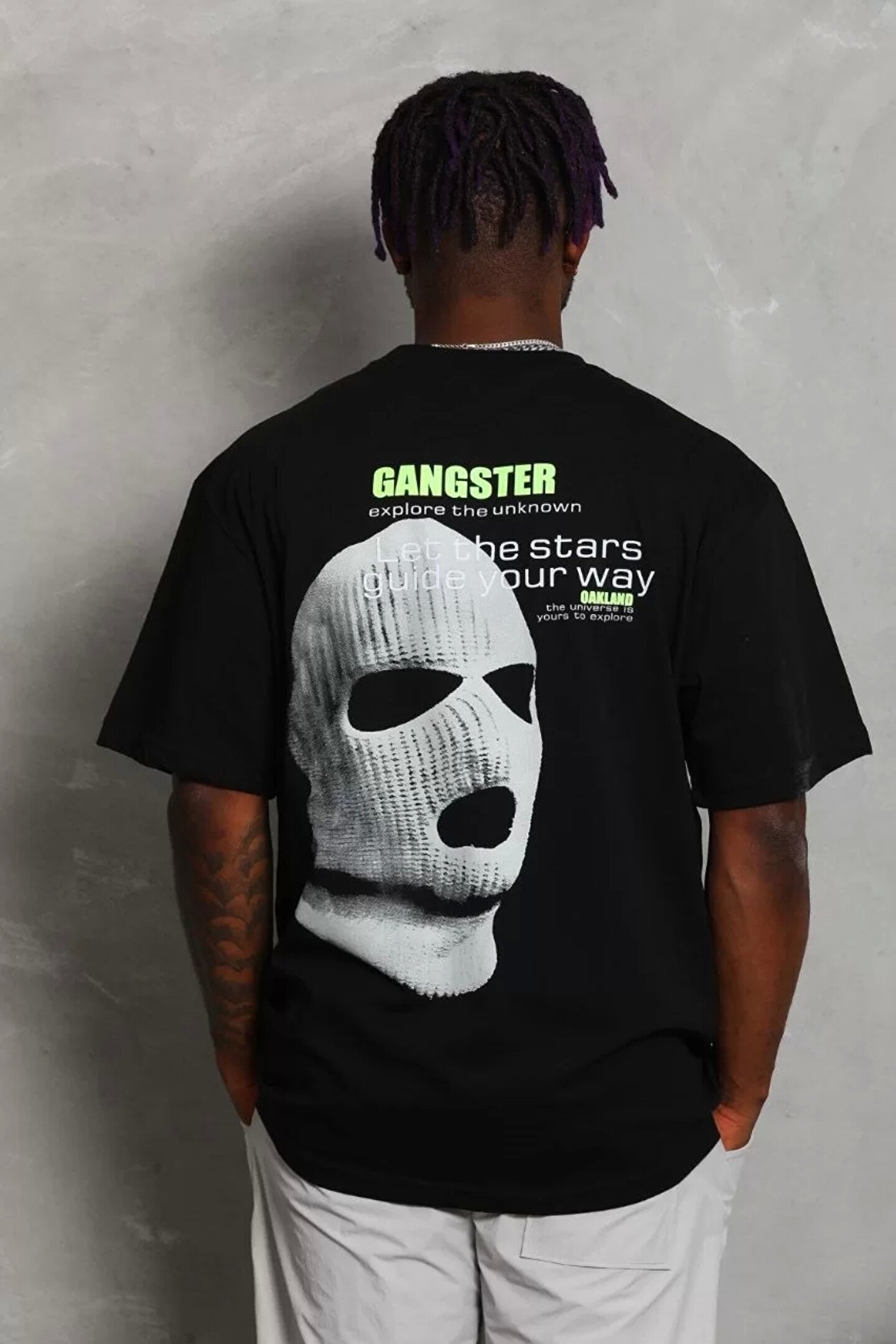 Silerra Unisex Oversize Baskılı Bisiklet Yaka T-Shirt - Siyah