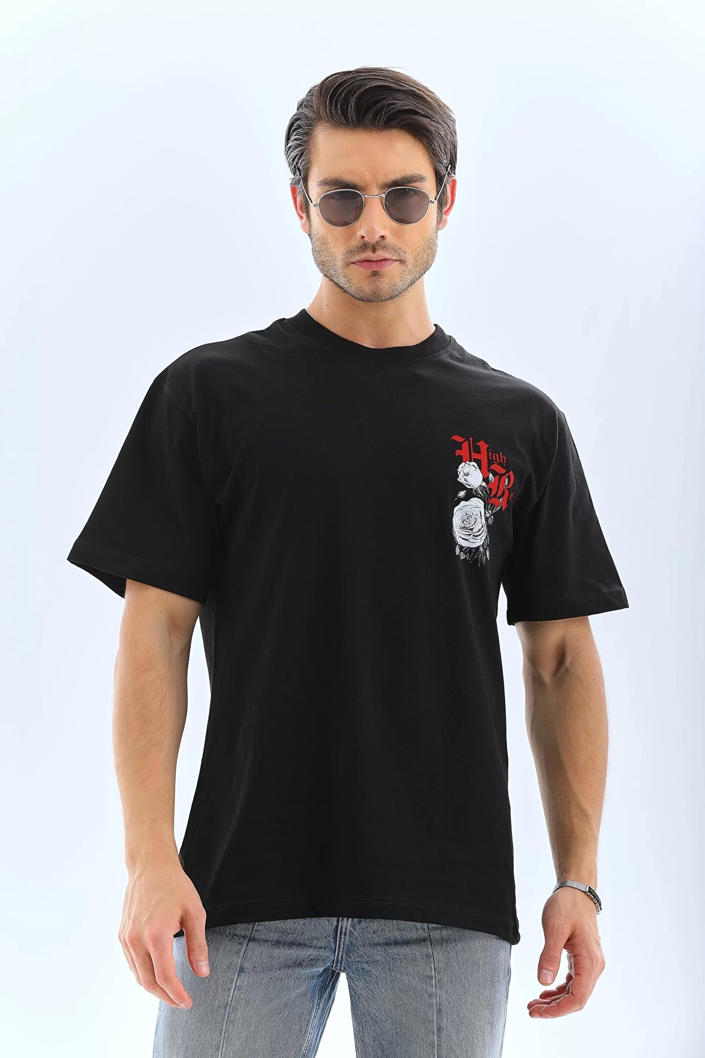 Silerra Unisex Oversize Baskılı Bisiklet Yaka T-Shirt - Siyah