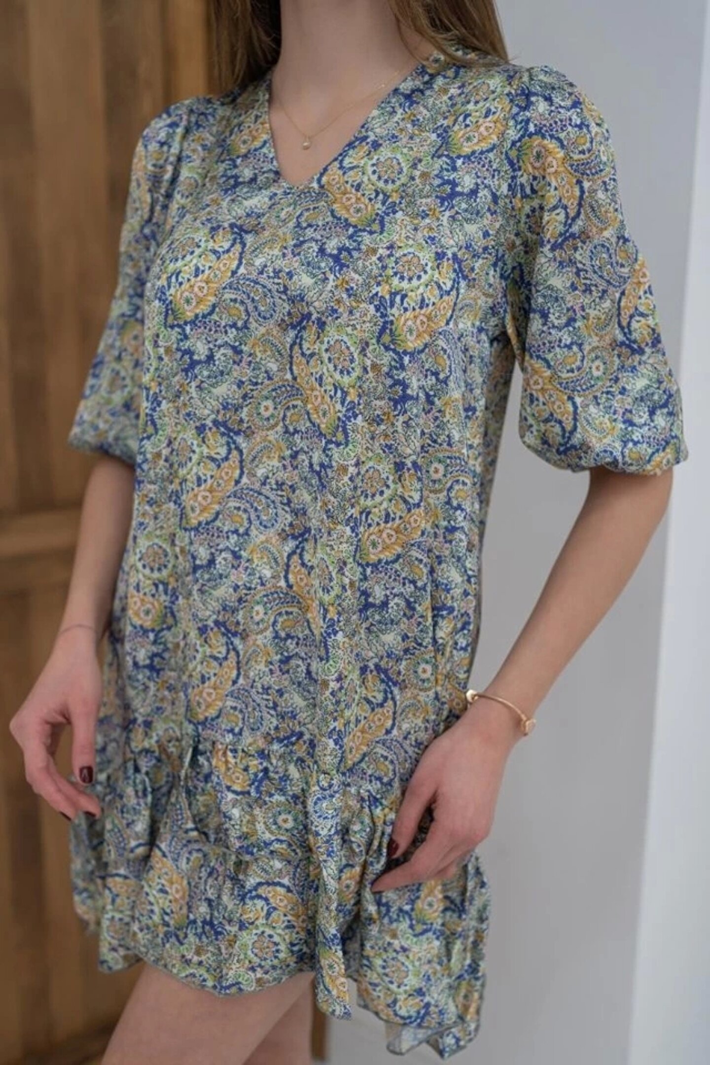 Yeşil Desenli Saten Elbise