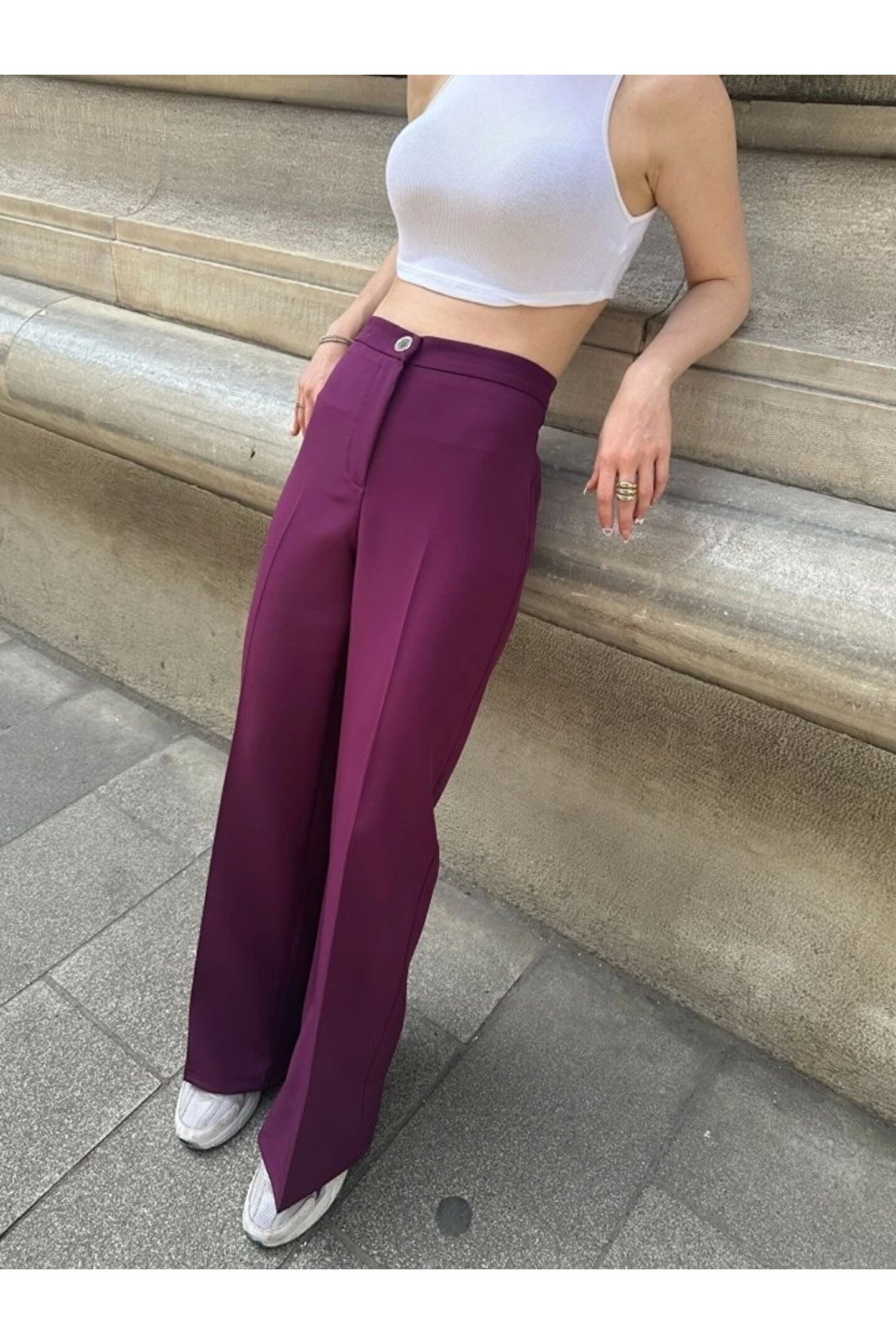 Yüksek Bel Palazzo Metal Düğme Pantolon