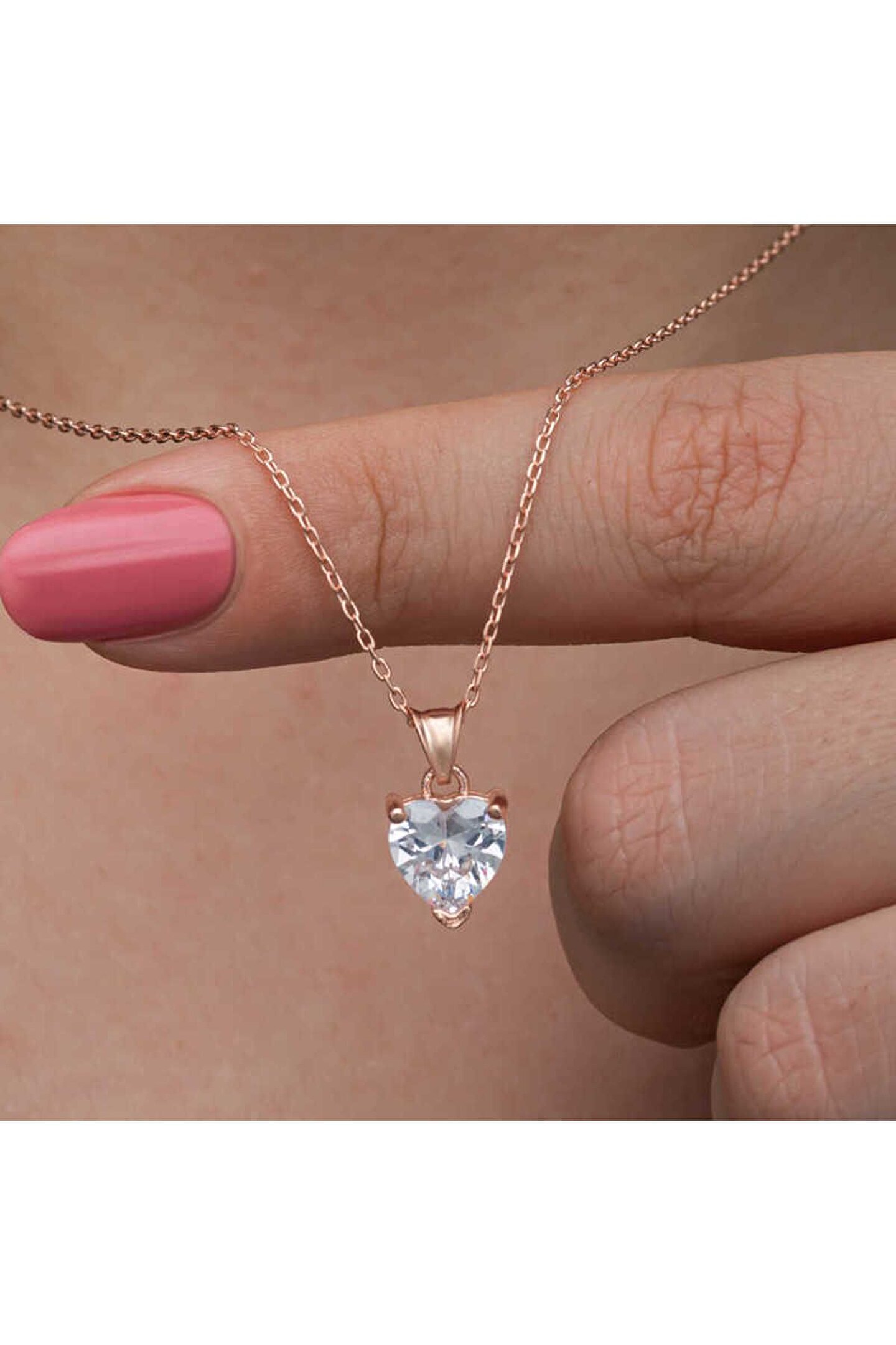 Samur Parti Parti Aksesuar & Kostüm 925 Ayar Gümüş Rose Beyaz Taşlı Kalpli Kadın Kolye
