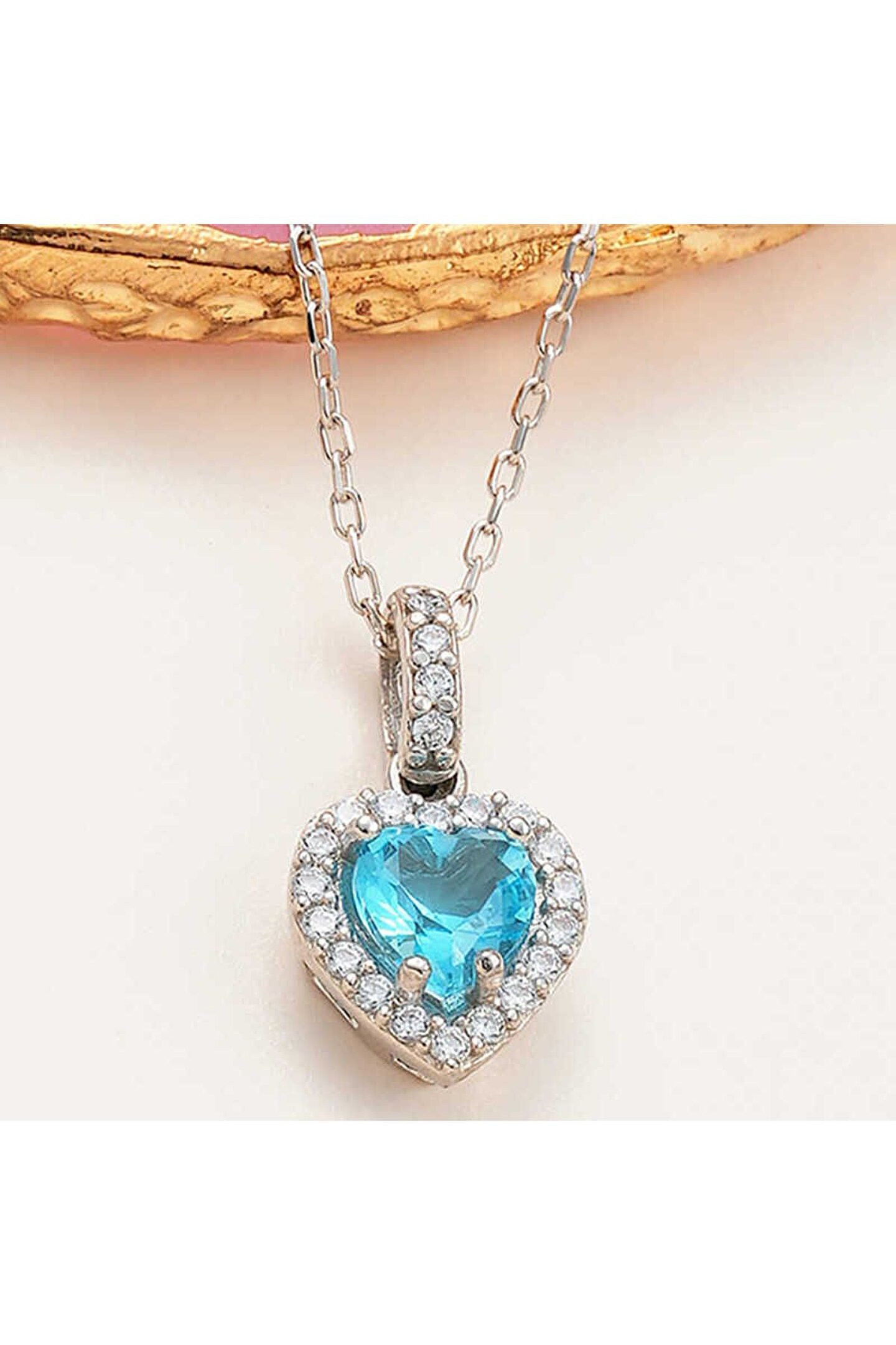 Samur Parti Parti Aksesuar & Kostüm 925 Ayar Gümüş Turkuaz Taşlı Kalpli Kadın Kolye