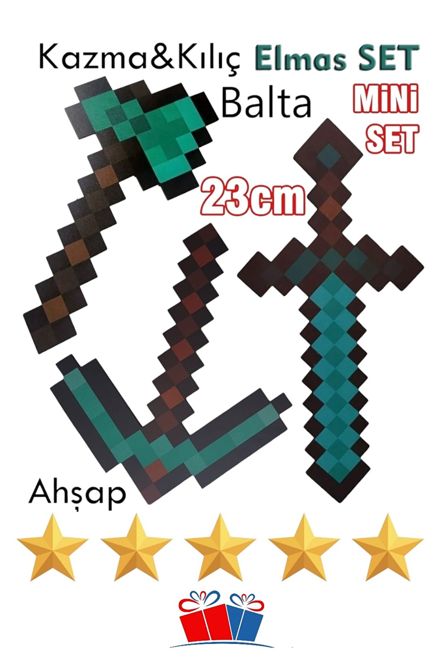 ; Akşap ELMAS 3 lü set figür oyuncak Şık görünümü ile dilediğiniz yerde kullanabilirsiniz.; ; Ürün kullanımı çok basit tak ve çalıştır modundadır.; ; Bu Ürün Sadece ; Ürün Ahşap yani tahtadandır.; ; Ürün UV ( Ultraviole ) Renkli baskılı olarak gönderilmektedir.; ; Kolay Taşınabilir.; ; Ürün Fotoların ürünün gerçek fotolarıdır.; ; Lütfen Fotoların tamamına bakınız ve detaylı inceleyiniz.; ; Ürün Ahşap yani tahtadandır.; ; - Çocukların 10 yaş ve üzeri için tasarlanmış, oyuncak, genç oyuncuların hayal gücünü geliştirecek ve eğlenceli vakit geçirmelerini sağlayacak.; ; - plastik malzemeden üretilmiş olup, çocukların güvenliği düşünülerek tasarlanmıştır.; ; Sağlam yapısı ile uzun süreli kullanım için idealdir.; ; Popüler Figür tasarımını yansıtan bu oyuncak seti, çocukların oyun dünyasına olan ilgisini artırarak onların hayal güçlerini geliştirmelerine yardımcı olur.; ; - Hem çocukların hem de ilgisini çekecek bu oyuncak seti, oyun dünyasına adım atmak isteyenler için mükemmel bir başlangıç noktasıdır.; ; Uzunluk 23 cm ;