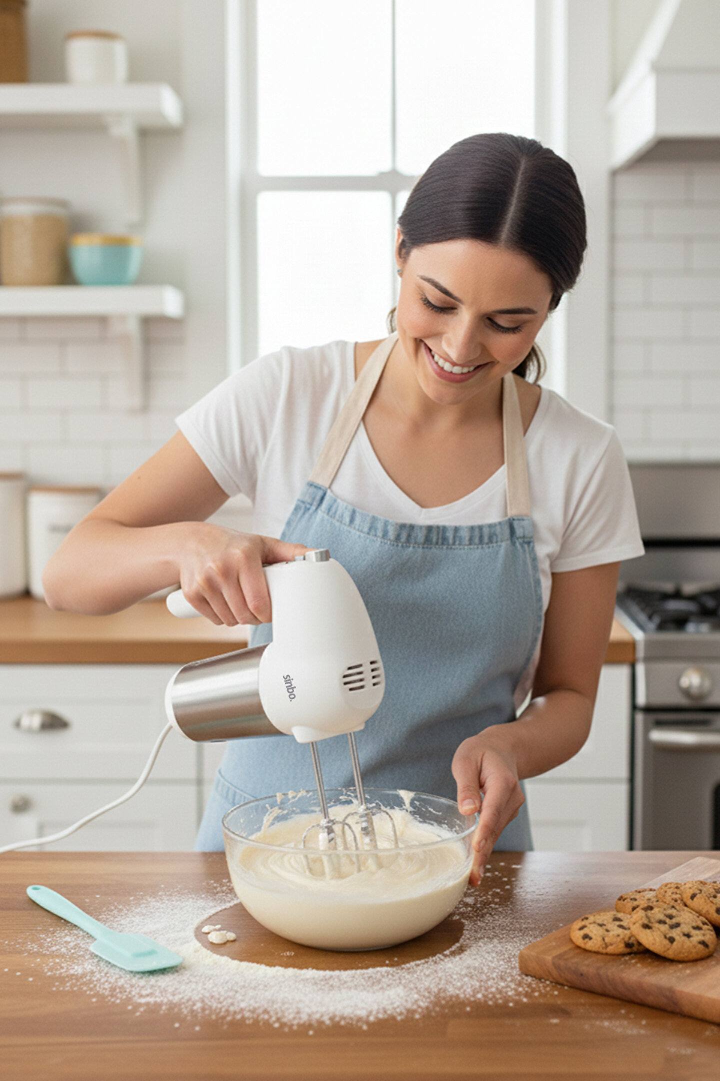 SMX-2774 El Mikseri, 5 kademeli hız ayarı sayesinde farklı tariflere uygun hız kontrolü sunar. Paslanmaz çelik çiftli çırpma ve karıştırma aparatları ile çırpma, karıştırma ve hafif yoğurma işlemlerini kolaylıkla yapabilirsiniz. Dayanıklı paslanmaz çelik gövdesi uzun ömürlü kullanım sağlarken, aksesuar çıkarma düğmesi aparatlar arasında hızlı ve pratik geçiş imkânı sunar. Ergonomik tasarımı sayesinde elde rahat kavranır ve mutfakta pratik bir yardımcı görevi görür.