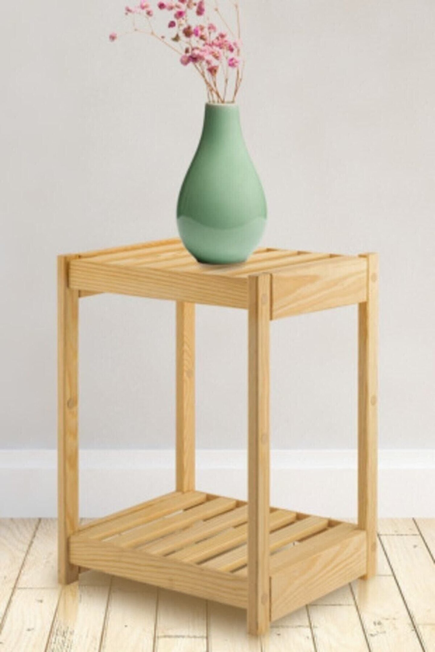 Dekoratif 2 Katlı %100 Doğal Kızılçam Kitaplık Saksılık Çok Amaçlı Sehpa 5317