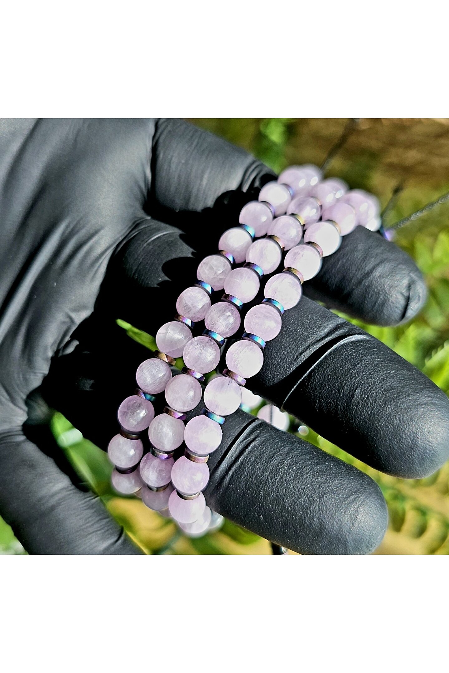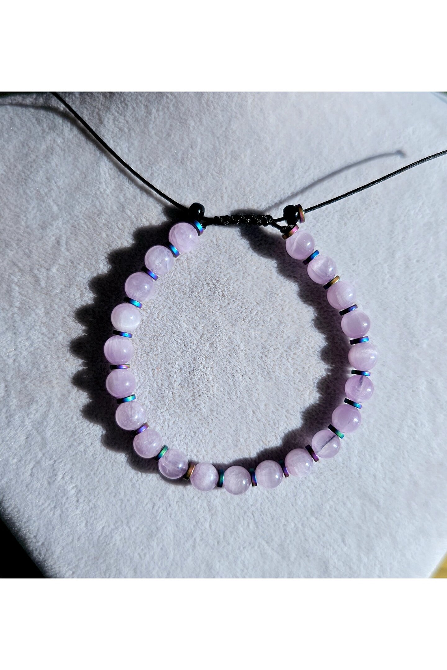 - El yapımı tasarımıyla öne çıkan bu bileklik, her bir detayı özenle işlenmiş 6mm zirve kalite kunzit doğal taş kullanılarak üretilmiştir; - Doğal taşın eşsiz dokusu ve benzersiz desenleri, bu bilekliğe otantik bir görünüm kazandırırken, her kıyafetle uyum sağlayacak şık bir aksesuar oluşturur; - Özel günlerde veya günlük kullanım için ideal olan bu bileklik, hem zarifliği hem de dayanıklılığı bir arada sunar;
