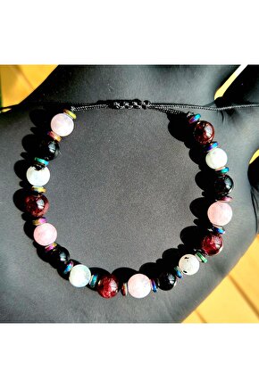 Akrep burcu bileklik, akrep burcu özelliklerini yansıtan doğal taşlardan üretilmiştir; Obsidyen, kırmızı garnet, kunzit ve ay taşı gibi değerli taşlar, bilekliğin şıklığını ve anlamını artırır; Doğal taş kullanımı sayesinde her bileklik benzersiz ve otantik bir görünüm sunar; Akrep burcu bileklik, hem günlük kullanım hem de özel günlerde tercih edilebilecek zarif bir aksesuardır;
