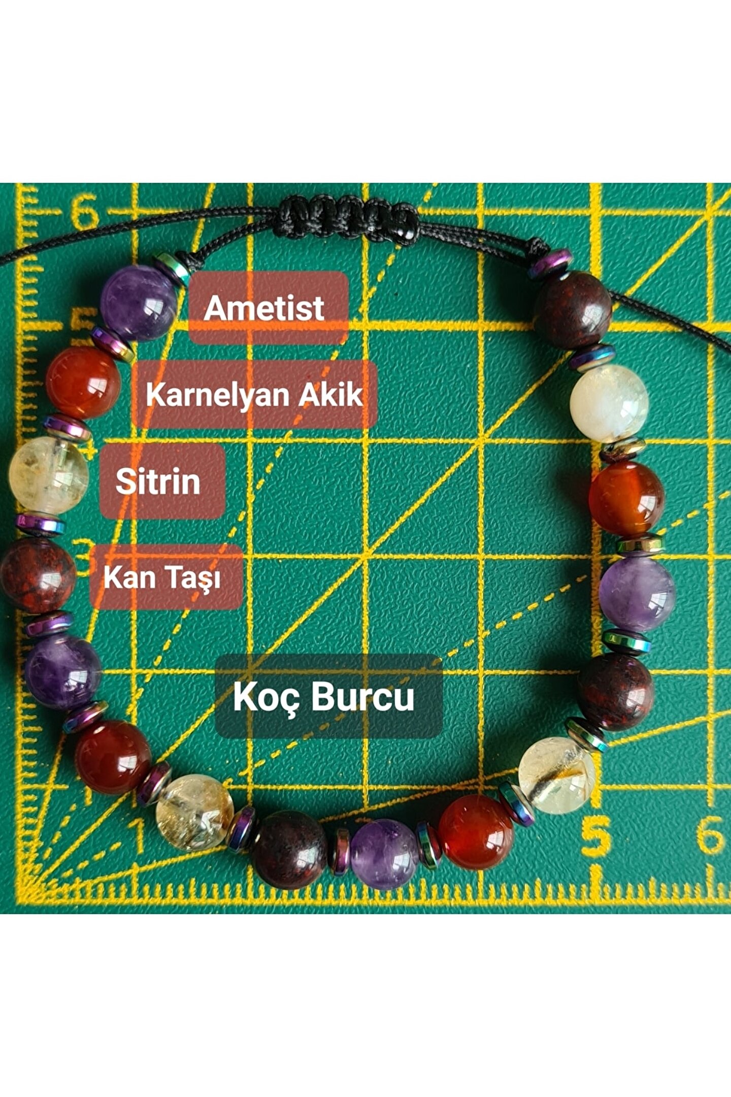 Doğal taş bileklik, Koç burcu için özel olarak tasarlanmış bir aksesuar seçeneğidir; Ametist, sitrin, kan taşı ve karnelyan akik gibi değerli taşlar kullanılarak üretilmiştir; Bu bileklik, hem şıklığı hem de enerjiyi bir arada sunarak Koç burcunun enerjisini yansıtır; Doğal taş materyali sayesinde her bileklik benzersiz ve otantik bir görünüm kazanır;