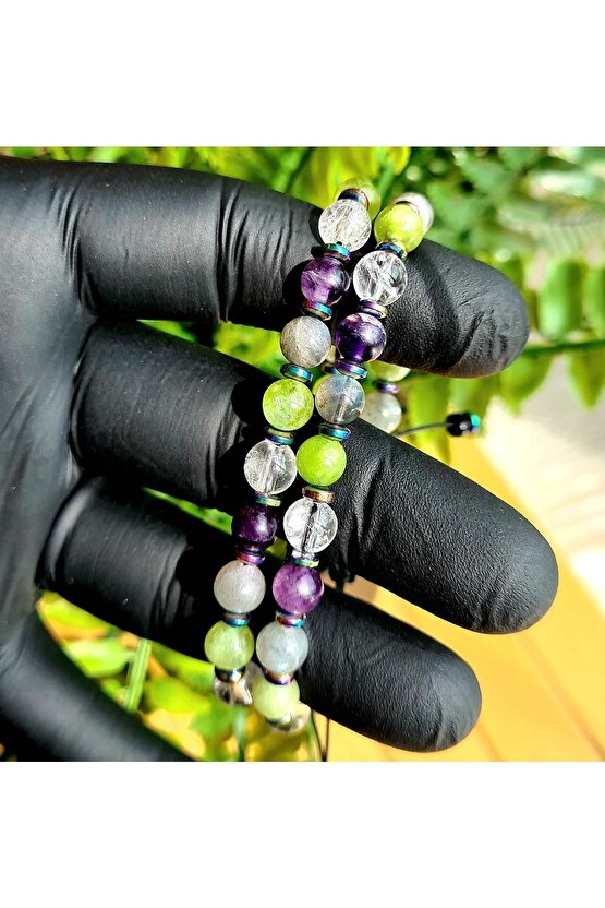 Oğlak Burcu Doğal Taş Bileklik > Florit - Kristal Kuvars - Labrodit - Peridot