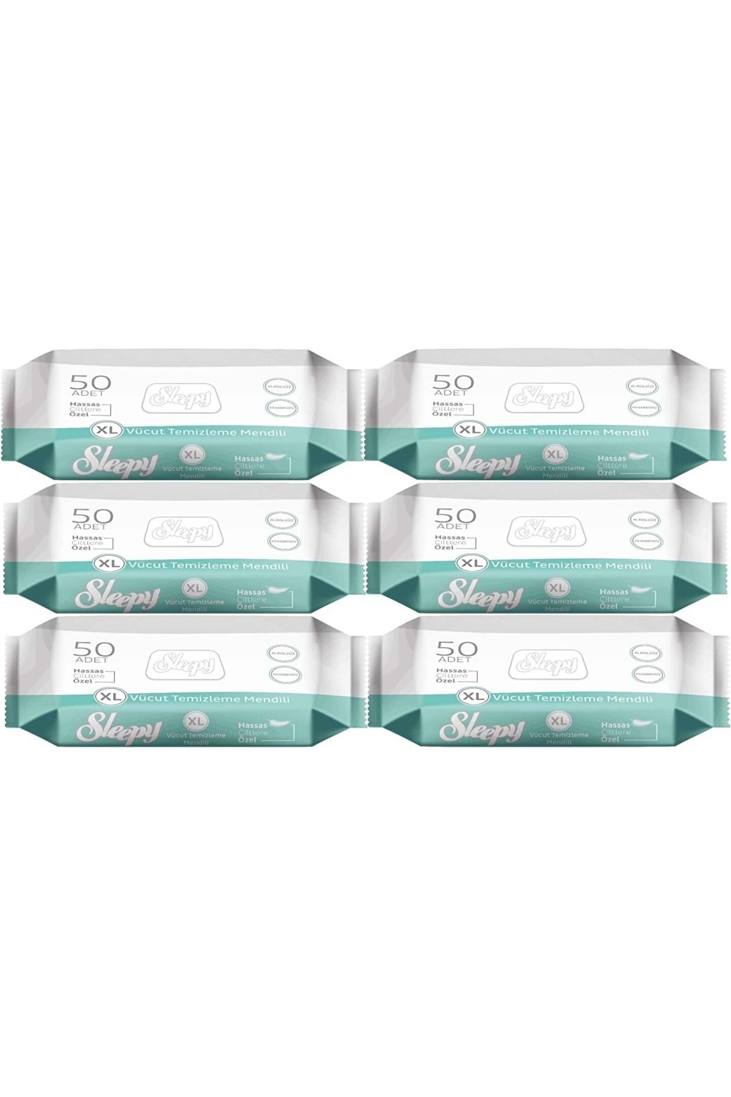 Sleepy Hasta Vücut Temizleme Islak Mendil Havlu 50 Yaprak XL (6 Lı Set) - Sleepy vücut temizleme mendilleri alkol ve paraben içermez.; - Hassas yapısı ile hastaların güvenli ve rahat temizlenmesine olanak tanır.; - Hipoalerjeniktir.; - Türkiye'nin saf suyla dokunmuş vücut temizleme mendili.