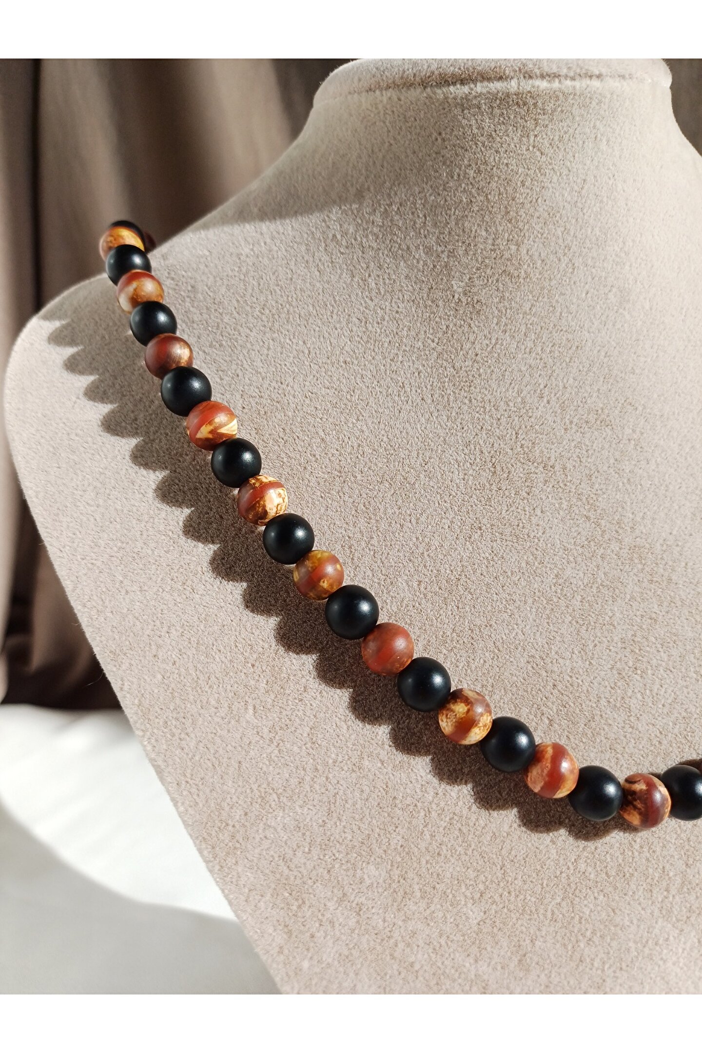 SM DOĞALTAŞ TİBET AKİK & SİYAH ONİKS DOĞAL TAŞ ERKEK KOLYE