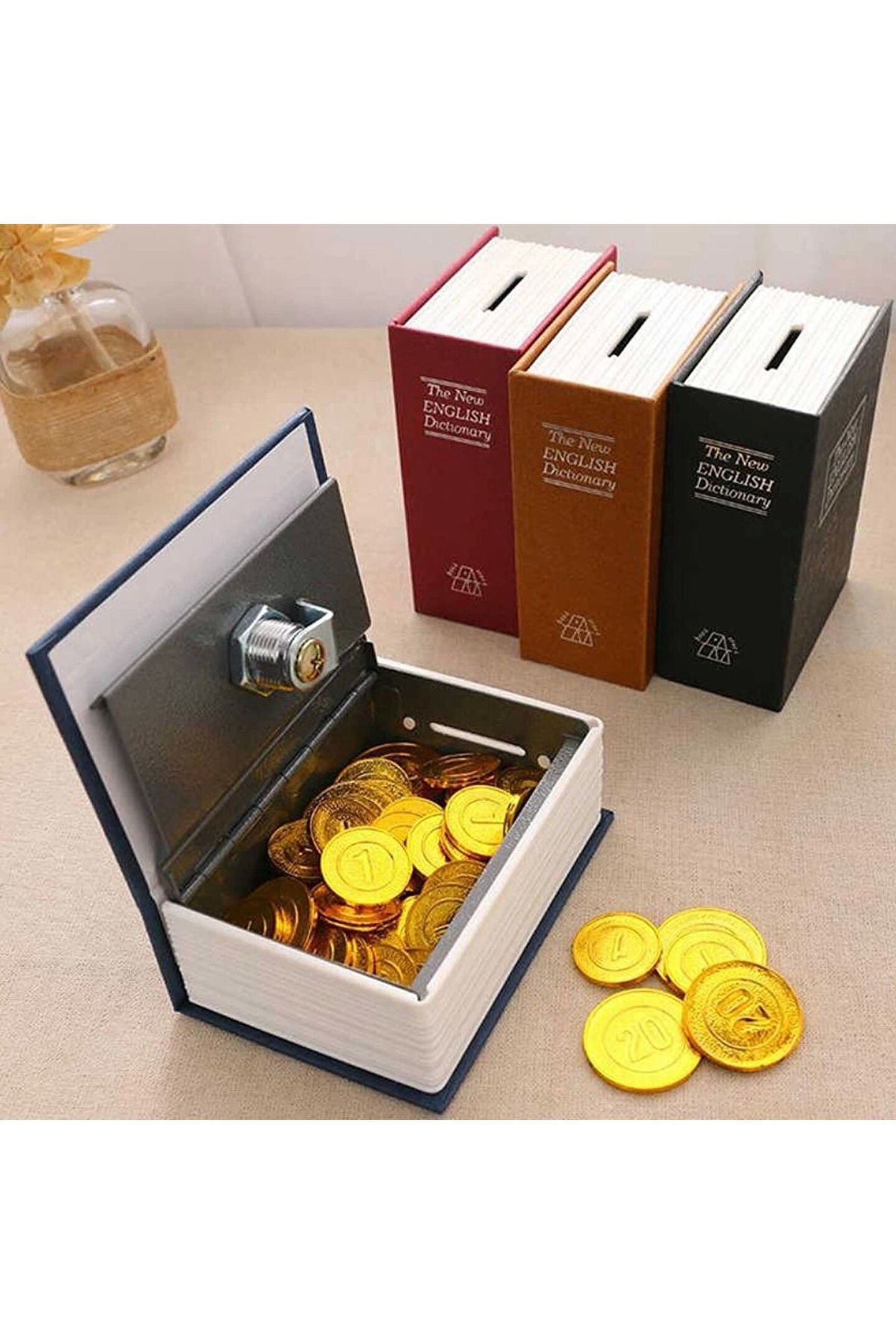 Kitap Şeklinde Mini Boy Kilitli Kasa Ve Kumbara