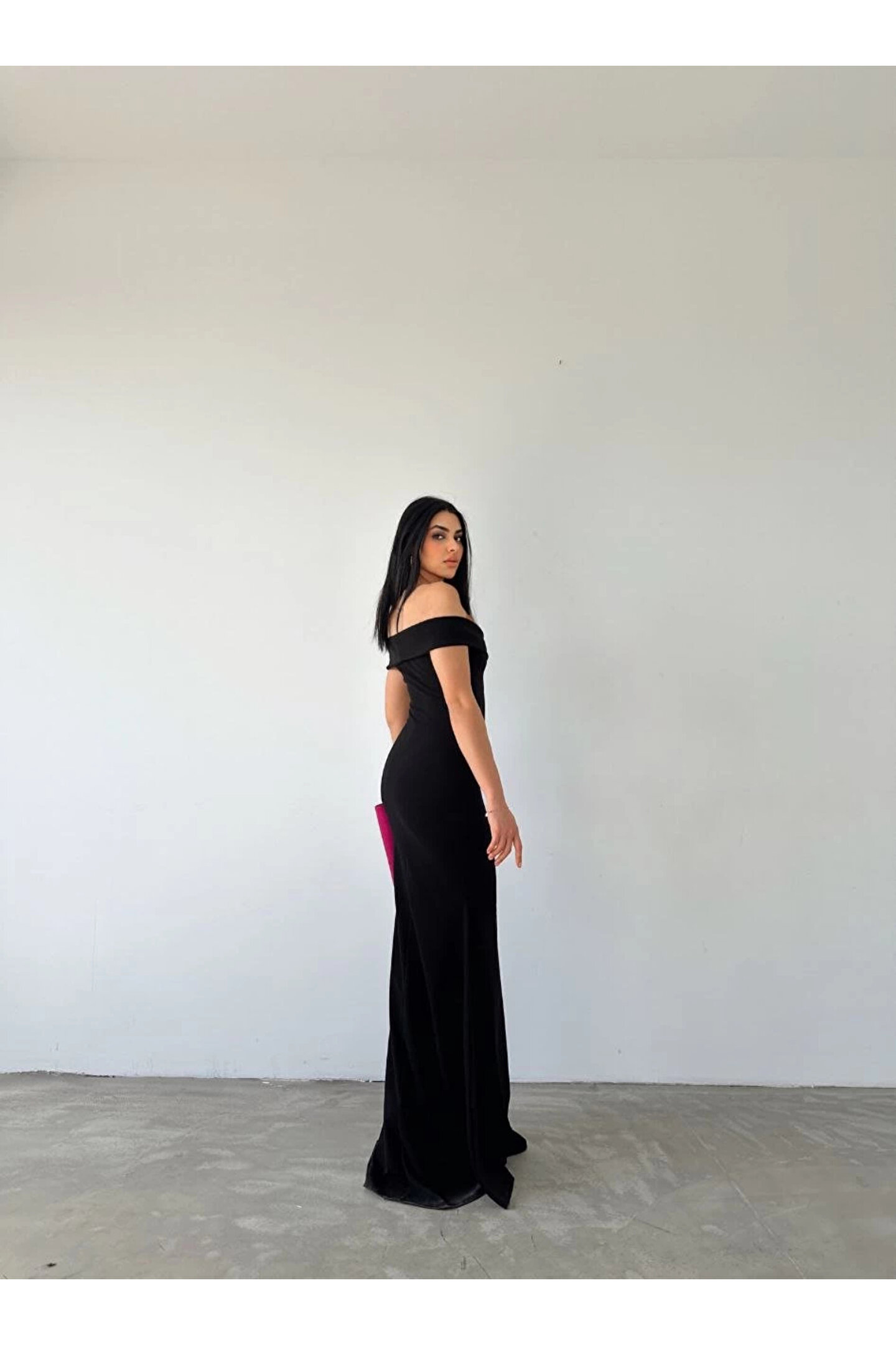 Kadın Dalgıç Kumaş Kayık Yaka Ve Dekolte Detaylı Elbise
