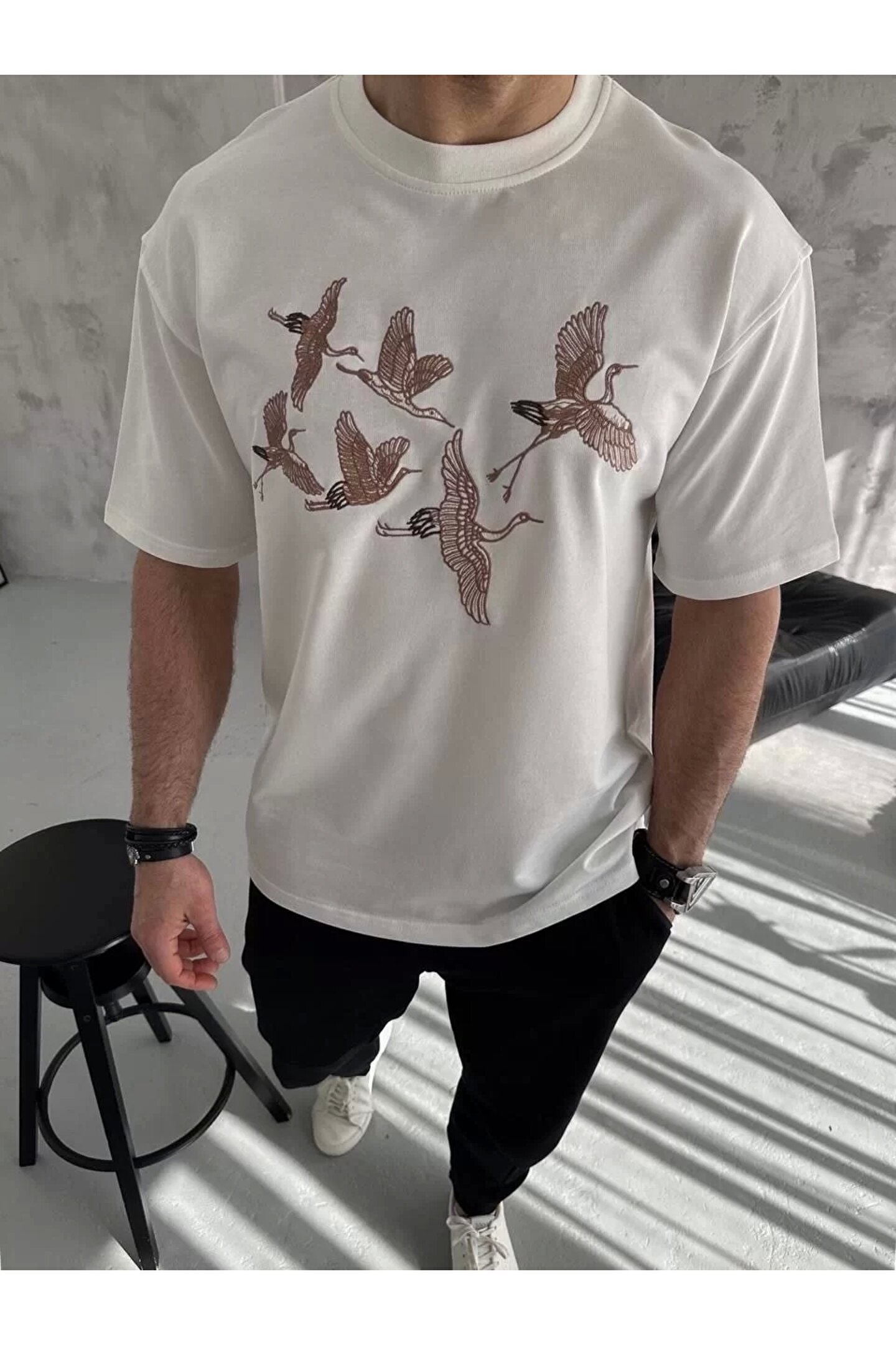 Unisex Nakış İşlemeli T-Shirt - Beyaz
