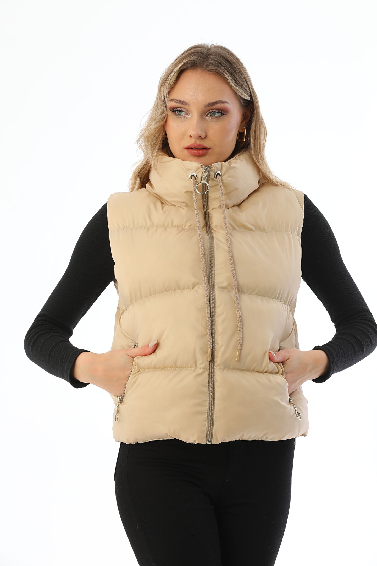 Kadın Kapüşon Ve Fermuar Detay Welsoft Kolsuz Yelek