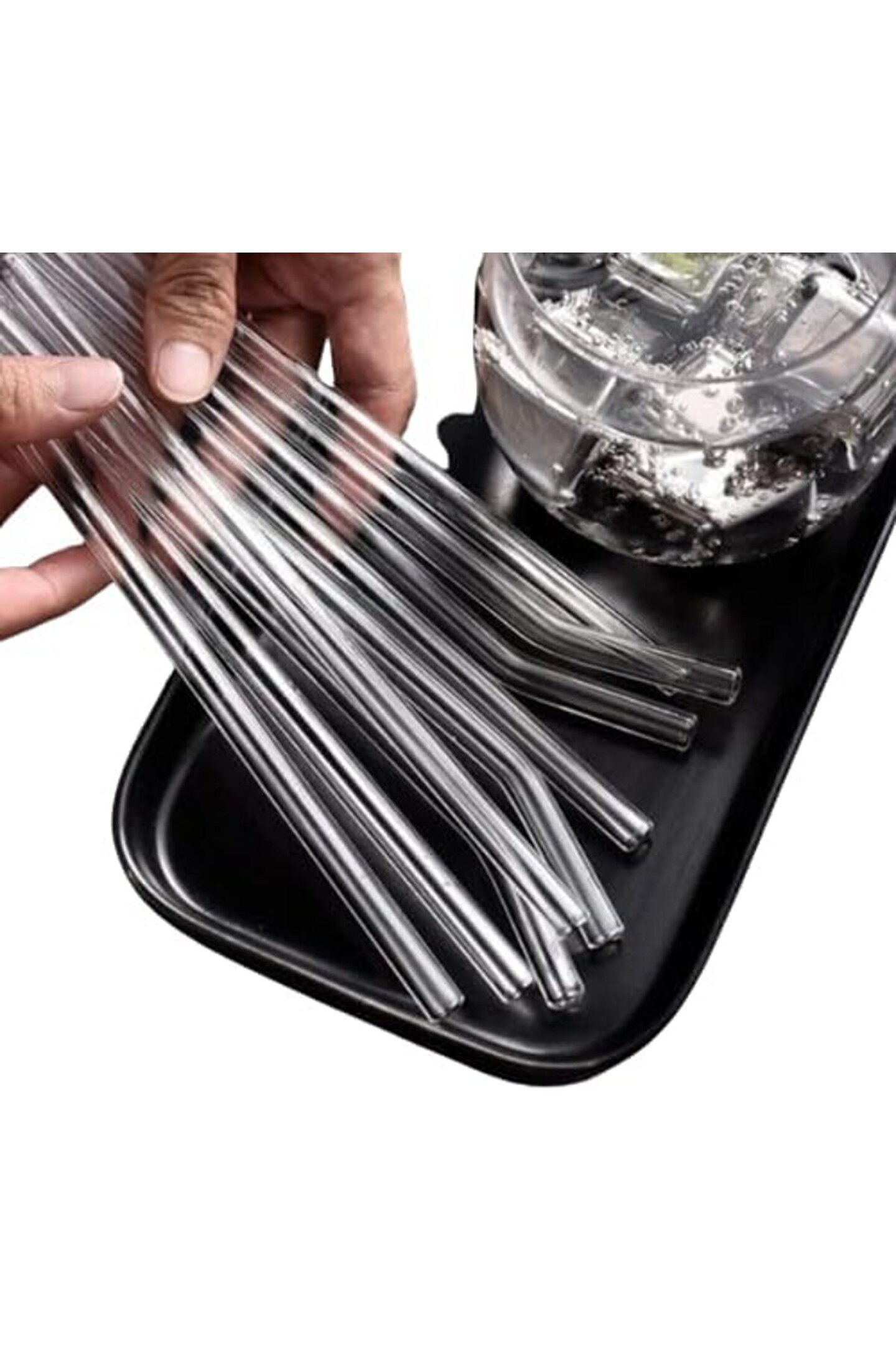 Store 10lu Yüksek Borosilikat Şeffaf Cam Pipet, Isıya Dayanıklı Yeniden Kullanılabilir İçme Pipet