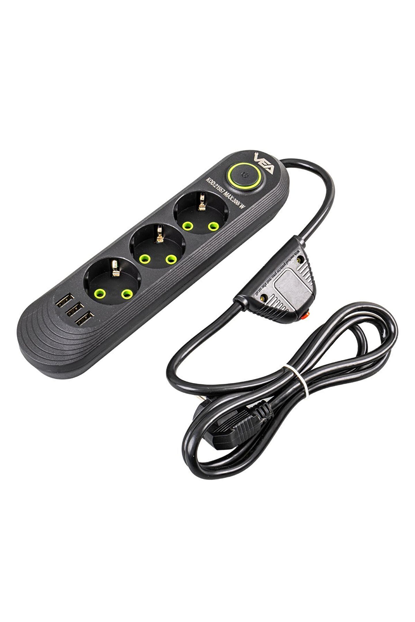 STOREMAX bydx 3LÜ 1.5 METRE KABLOLU 3 USBLİ SİYAH AKIM KORUMALI PRİZ BAKIR Uyumlu KABLO HARİCİ GÜÇ
