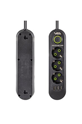 1021572 newfst 3'LÜ 1.5 METRE KABLOLU 3 USB'Lİ SİYAH AKIM KORUMALI PRİZ BAKIR Uyumlu KABLO HARİCİ GÜÇ ANAHTARI bydx