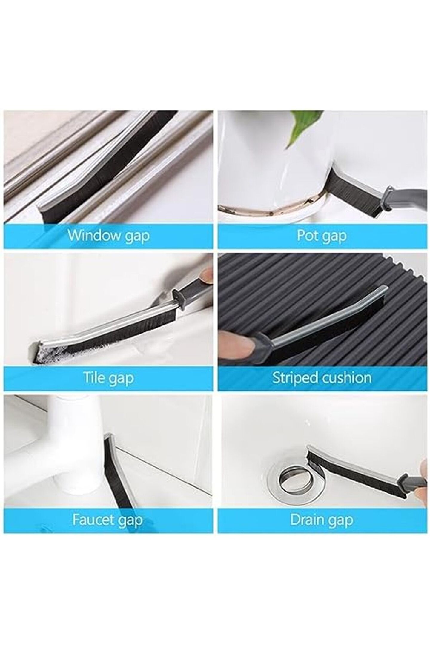 【Çoklu Kullanımlar】İster mutfak lavabosu, banyo lavabosu, fırın ve döner tablalar, sürgülü kapı rayları, pencere çerçeveleri veya klozet kapağı etrafındaki boşluk olsun, çatlak temizleme aleti bunu çözebilir ve aile hayatı için iyi bir yardımcıdır.; 【Rahat Sap】Ergonomik sapı sayesinde boşluk fırçası rahat tutulur ve kullanımı kolaydır, yerden tasarruf etmek ve kurutmak için kolayca asmak için küçük bir delik ile tasarlanmıştır.; 【Güvenilir Malzeme】Yüksek kaliteli PP malzemeden üretilen pencere oluğu temizleme fırçası dayanıklı ve dayanıklıdır.; Aşınmadan düzenli kullanıma dayanır ve uzun süreli sağlar.; Boşluk Fırçası, en dar boşluklardan bile kiri ve kalıntıları zahmetsizce temizleyerek daha temiz ve daha hijyenik bir ev sağlar.; 【Her yüzey için güvenli】Sert kıllı aralık temizleme fırçamız fayans, cam, seramik, taş, kuvars, granit dahil her türlü yüzey için güvenlidir.; 【Geniş Uygulama Alanı】Çatlak temizleme fırçası mutfak, banyo muslukları, köşeler, musluklar, tüm fayans yüzeyleri, duş kapı rayları, lavabo giderleri, pencere çerçeveleri ve daha fazlası için uygundur.; Aile veya arkadaşlar için mükemmel bir hediye.; Çatlak Temizleme Fırçası, 2 Adet Boşluk Temizleme Fırçası, Banyo Temizleme Fırçası, Pencere Oluk Temizleme Fırçası, Çatlak Temizleme Araçları, Ölü Köşeler Ev Mutfak için Çok Fonksiyonlu