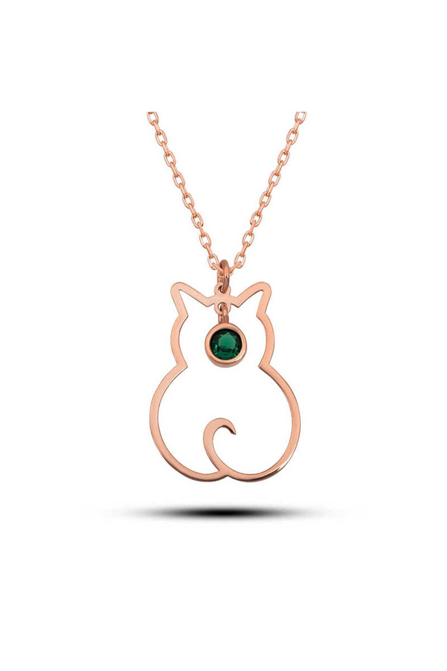 925 Ayar Gümüş Mayıs Ayı Doğum Taşı Kedi Kadın Kolye