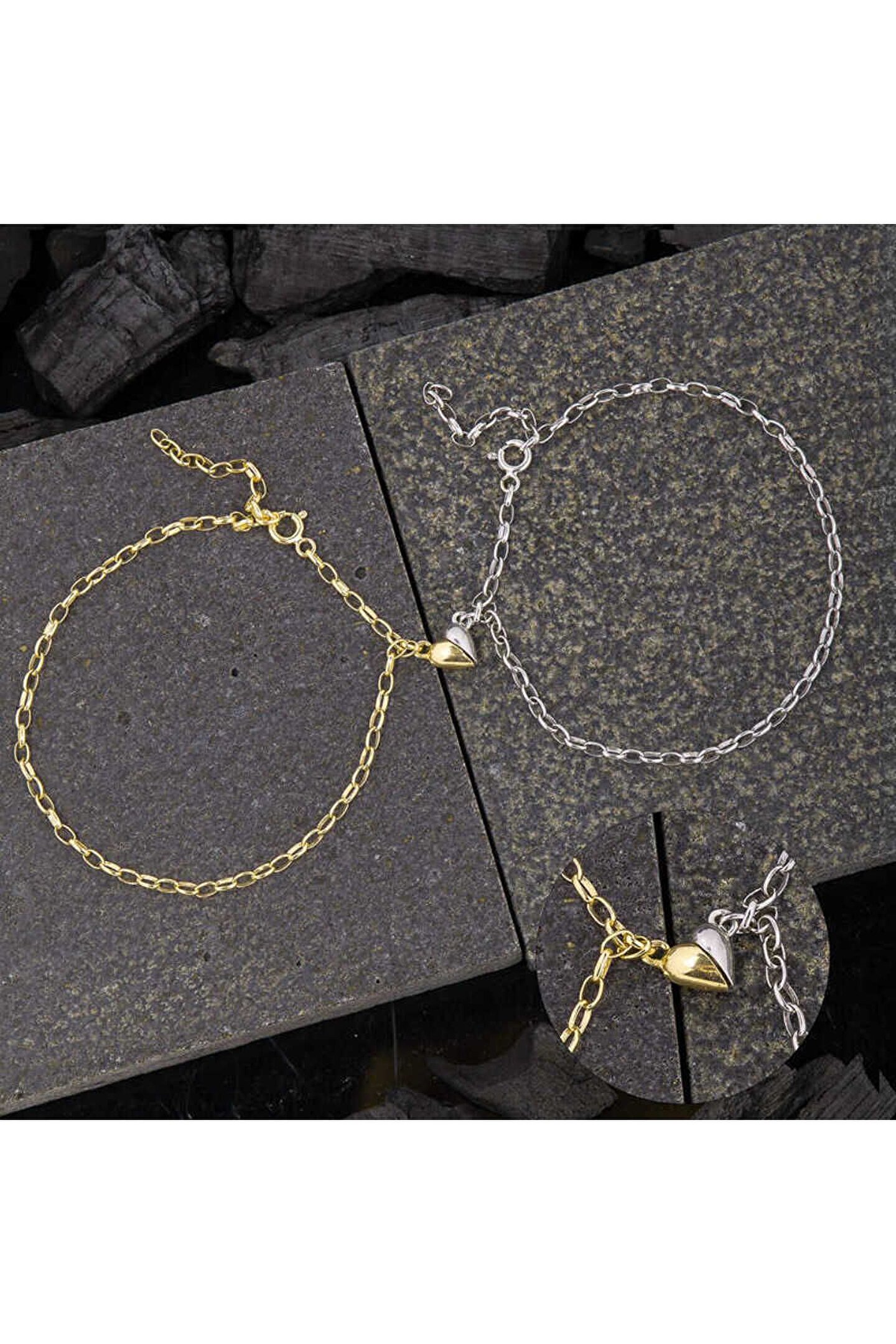 925 Ayar Gümüş Rodyum Gold Çift Kalpli Aşk Bileklik