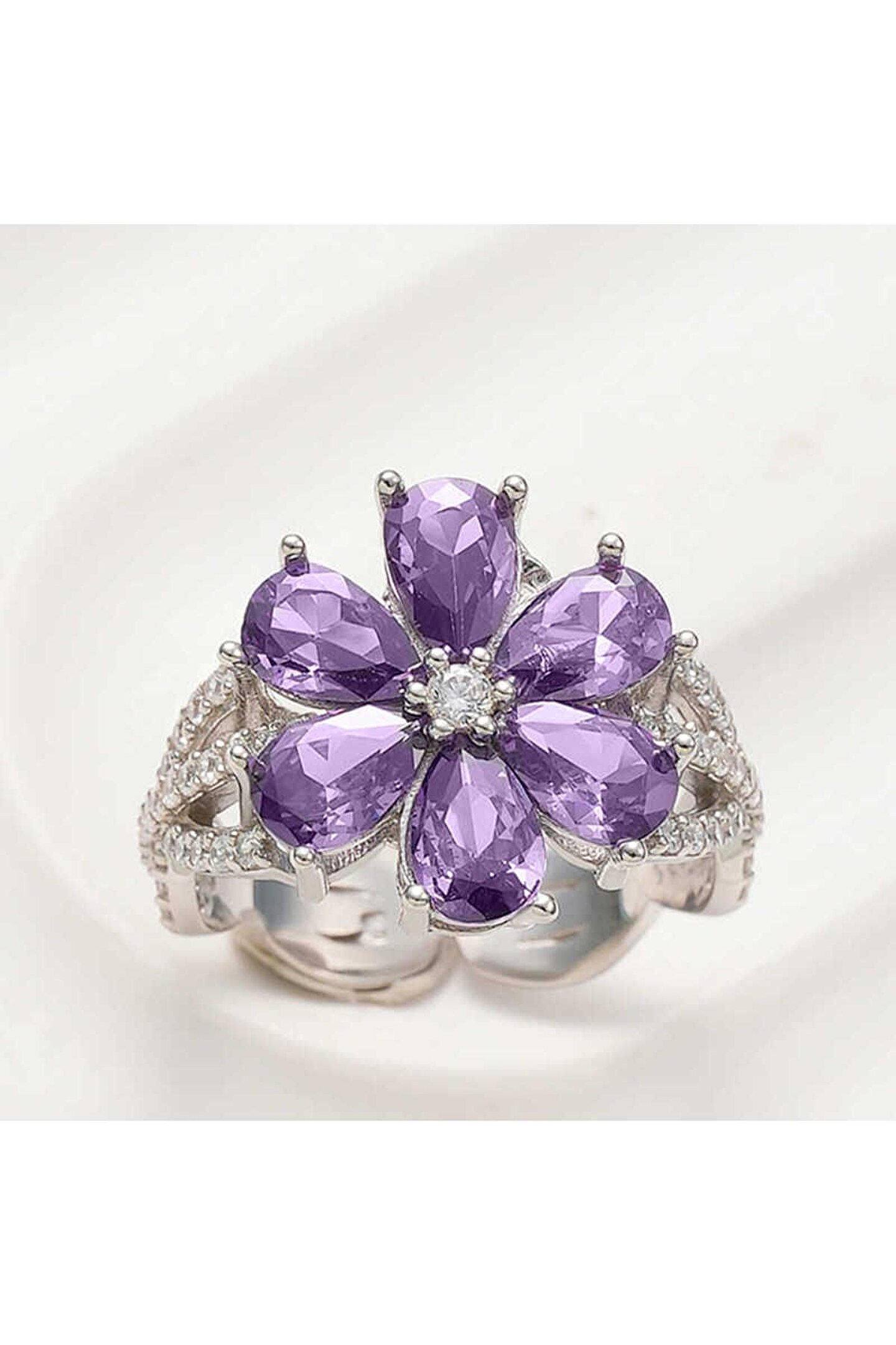 Gümüş Mor Sevgi Çiçeği Kadın Yüzük