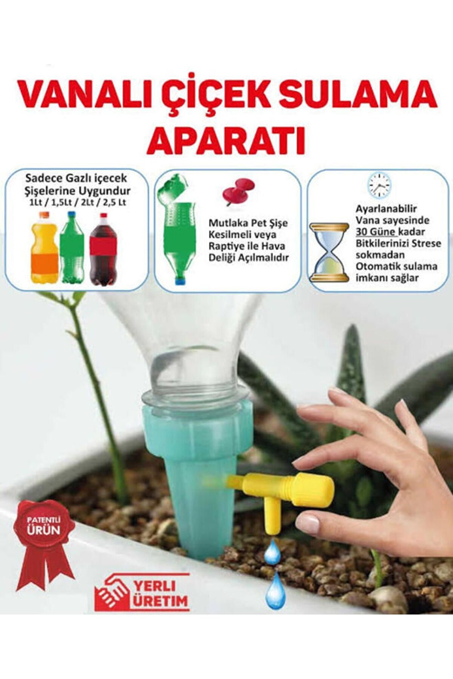 Dikkat! Su şişelerine uymaz! Litre ve marka fark etmeksizin sadece tüm gazlı içecek şişelerine uyumludur. ; Önemli not: Şişe kapaklarının dibinde kalan halkayı koparmalı ve hava alıp damlama yapabilmesi şişenin dip tarafında iğne ile bir delik açmalısınız. ; Dikkat! Su şişelerine uymaz! Litre ve marka fark etmeksizin sadece tüm gazlı içecek şişelerine uyumludur. ; Önemli not: Şişe kapaklarının dibinde kalan halkayı koparmalı ve hava alıp damlama yapabilmesi şişenin dip tarafında iğne ile bir delik açmalısınız. ; Ürünümüz tüm gazlı içeçek şişelerine uyumludur. ; 1 aya kadar sulama yapılabilir. ; Şişenize ufak bir delik açarak kullanıma hazır hale getirebilirsiniz. ; Tatile yada başka bir yere gittiğiniz zaman çiçekleriniz kuruma derdine bu ürün ile son verebilirsiniz. ; Kutu içerisinde 30 adet başlık vardır.;