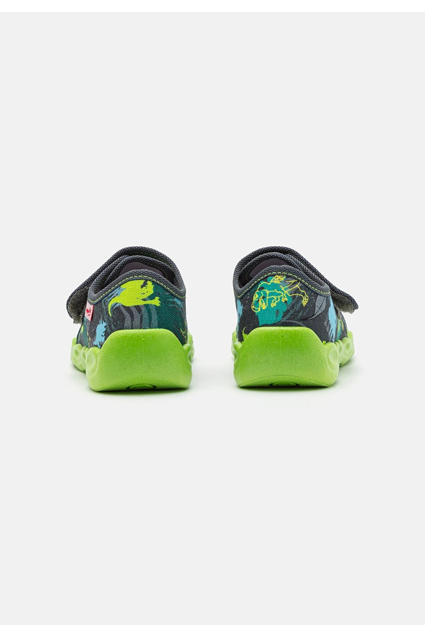 These BUBBLE vegan slippers win over curious kids with ease.; This superfit model features a vibrant print in cheerful colours, paired with a tonal lining and trim.; The super-lightweight sole with its imaginative bubble look offers plenty of comfort, with optimal cushioning thanks to the small air holes.; And that makes BUBBLE fun all round.; Colour name: Blue/Multicolored ; Type: Slipper ; Functions: Non-marking Sole ; Fastening type: Velcro Fastener ; Inner lining: Textile ; Insole material: Textile ; Upper materials: Textile ; Width: Medium ; Certificates: 100% Vegan Mark of Conformity ; Made in Europe: Made in Europe ; Motif: Shark ; Model: BUBBLE ; Article number: 1-006273-8030 ;