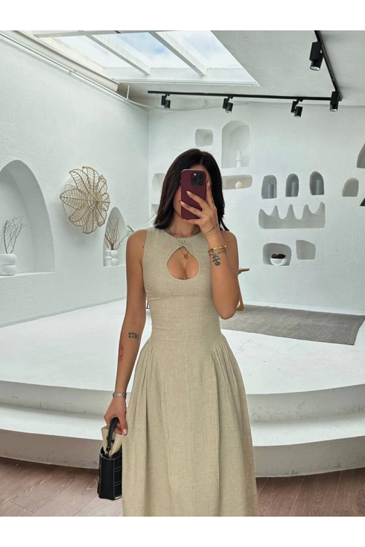 SuQ Kolsuz Uzun Kabardin Elbise - Gri