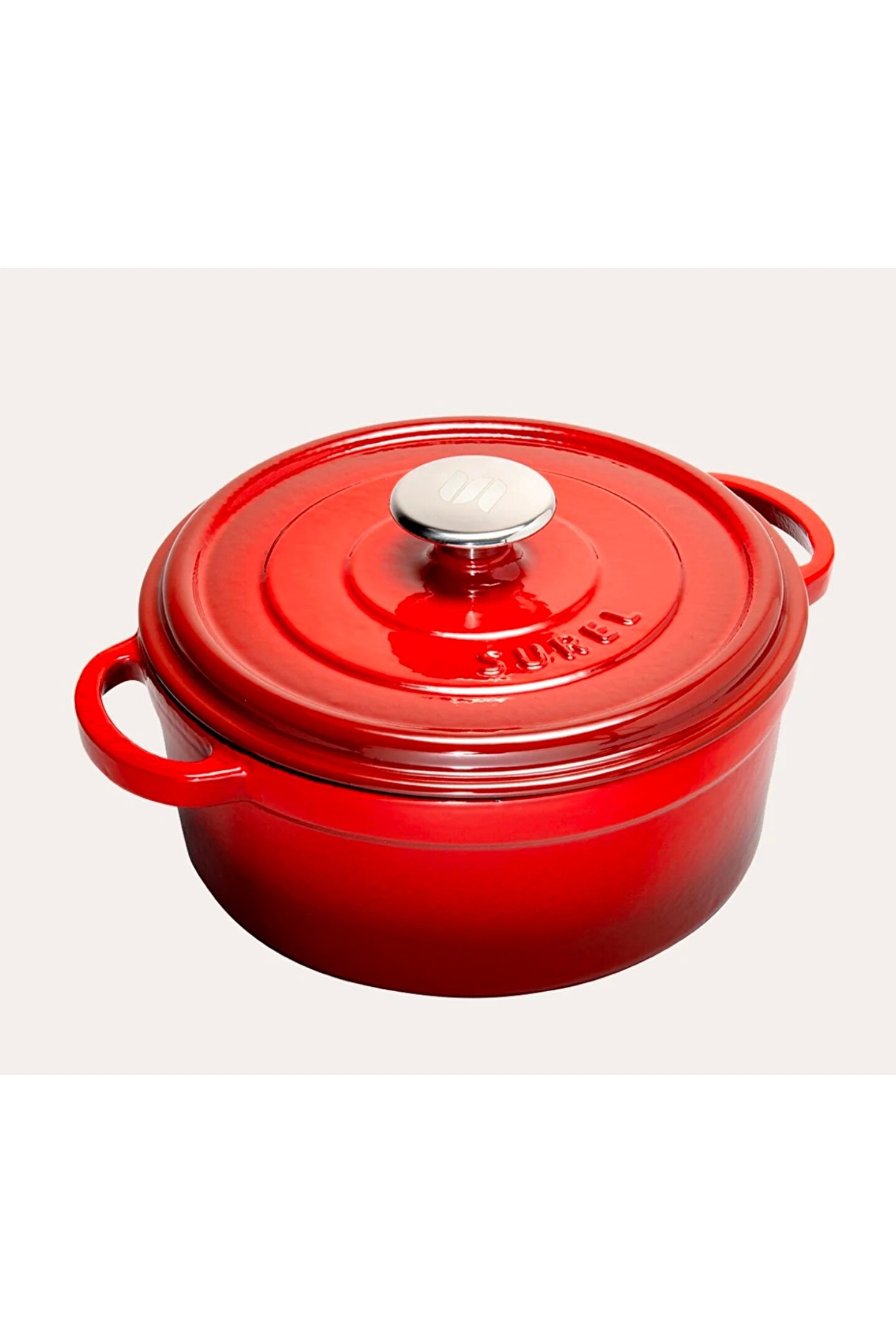 Çap: 20 cm, Genişlik: 26 cm, Uzunluk: 20 cm, Derinlik: 9.5 cm, Ağırlık: 3.20 kg.; %100 demir döküm malzeme üzerine, 3 kat antibakteriyel ve çizilmez emaye kaplamalıdır.; Demir döküm yapısı sayesinde, ısıyı tüm yüzeylere eşit dağıtarak, doğru ve orantılı ısı ile daha lezzetli pişirmenizi sağlar.; Tüm ocak tiplerinde ve fırında kullanıma uygundur, mutfakta çok amaçlı kullanım olanağı yaratır.; Bulaşık makinesinde rahatlıkla yıkanabilir.; Sürel ürünlerinde kullanılan emaye kaplama antibakteriyeldir, kanserojen madde içermez ve çizilmeye karşı dayanıklıdır.; Tüm Sürel ürünleri uluslararası geçerli sahip Food Contact (Gıda Temas Uygunluğu) sertifikasına sahiptir.; Aroma kapak teknolojisi sayesinde, pişirme esnasında oluşan su buharını %80’e kadar tencere içerisinde muhafaza eder.; Aroma kapağın özel tasarım kapak iç yüzeyi sayesinde, su buharı tekrar yoğunlaşır ve su damlacıkları halinde yemeğe geri döner.; Bu sayede yemeklerde vitamin ve mineral kaybının önüne geçilir, suyunu kaybetmeyen yemeğin aroması ve lezzeti artar.; Sürel ürünleri %100 geri dönüştürülebilir malzemeden üretilir ve yüksek dayanıklılığa sahip yapısı sayesinde, mutfakta uzun yıllar boyunca sağlıkla ve lezzetle kullanılabilir.; Demir döküm yapısı sayesinde ısıyı muhafaza ederek daha lezzetli pişirmenizi sağlayacak kısık veya orta düzey ateş kullanımı olanağı sağlar.; Düşük düzeyde, yüksek verimli ısı kullanımı sayesinde mutfağınızda enerji tasarrufu sağlar.