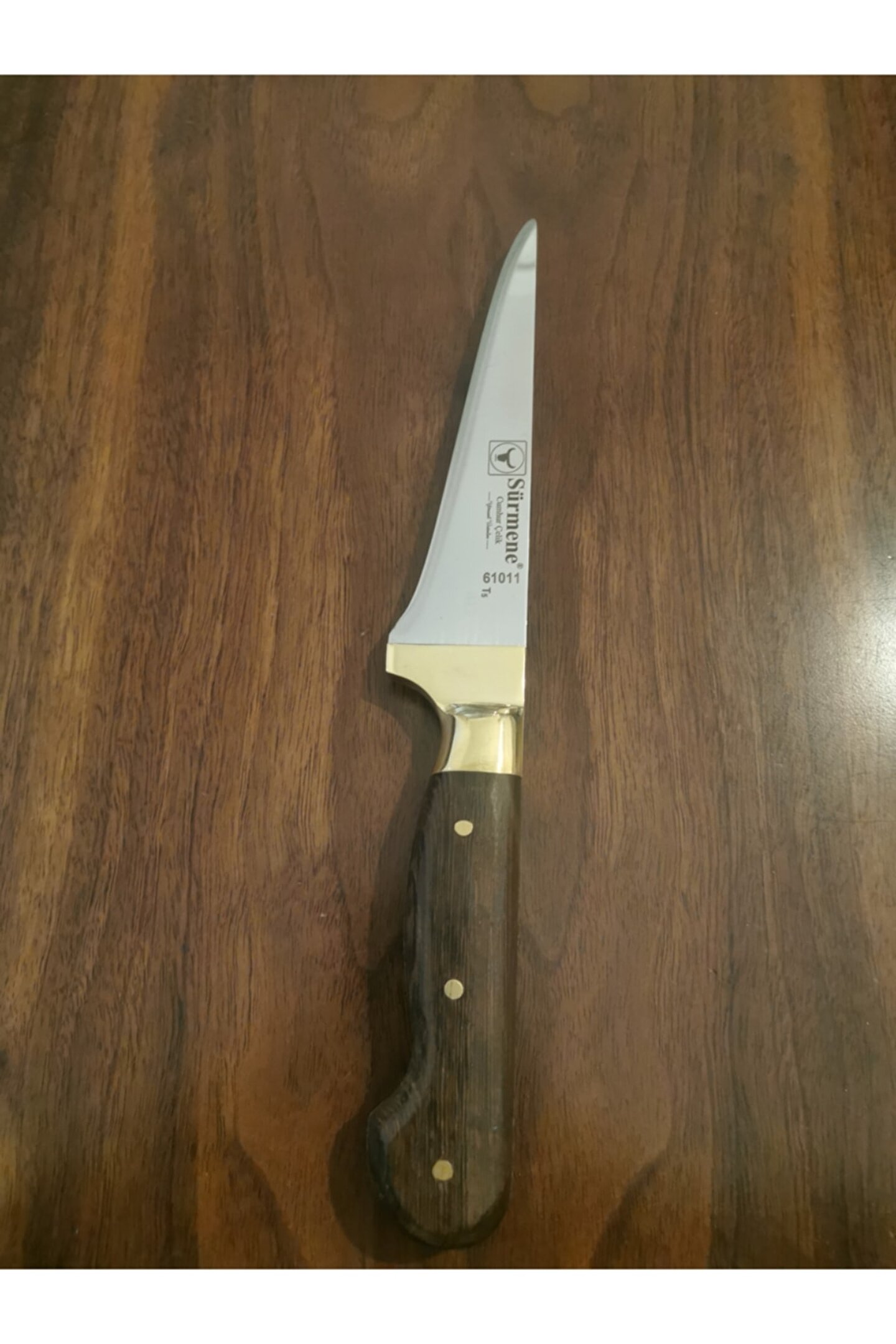 61011 sürmene cumhur çelik gold serisi sebze bıçağı hanımefendilerin mutfakta kolaylıkla sebze doğrama ve et açma ihtiyacını gidermek için üretilmiştir. ; Boydan sap (yekpare) kesici kısmı kaliteli paslanmaz çelikten üretilmiştir. ; Bıçağımızın sapı venge sap olup suya karşı dayanıklıdır. ; %100 el işçiliğidir. ; Kullanım önerileri: Buzlu et, tavuk vb. ; Dondurulmuş yiyeceklerde kullanılmamalı ve bulaşık makinasında yıkanmaması tavsiye edilir. ; Garanti: Paslanmaz çelik garantisi. ; Ürün resimde gözüktüğü gibi orijinal kutusunda gönderilecektir... ; Kesici ağız: 15cm Çelik kalitesi: N6 (paslanmaz çelik) Sap kalitesi: Venge sap Sırt kalınlığı: 3mm;
