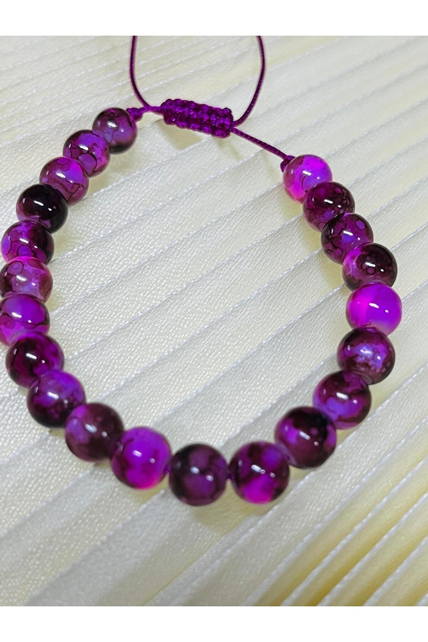 - Zarif tasarımıyla dikkat çeken mürdüm doğal taşlı bileklik, her yaş grubuna hitap eden şıklığı ve rahatlığı bir arada sunar.; - Unisex yapısı sayesinde hem kadınların hem de erkeklerin kullanımına uygun olarak tasarlanmıştır; herkes için ideal bir aksesuar seçeneği oluşturur.; - Doğal taş kullanımı ile benzersiz bir görünüm kazandırırken, bileğe göre ayarlanabilir asansörlü yapısı sayesinde konforlu bir kullanım sağlar.; - Türkiye'de üretilmiş olmasıyla yerel kaynakların değerini yansıtırken, kaliteli malzemeden üretilmesi uzun süreli dayanıklılık vaat eder.